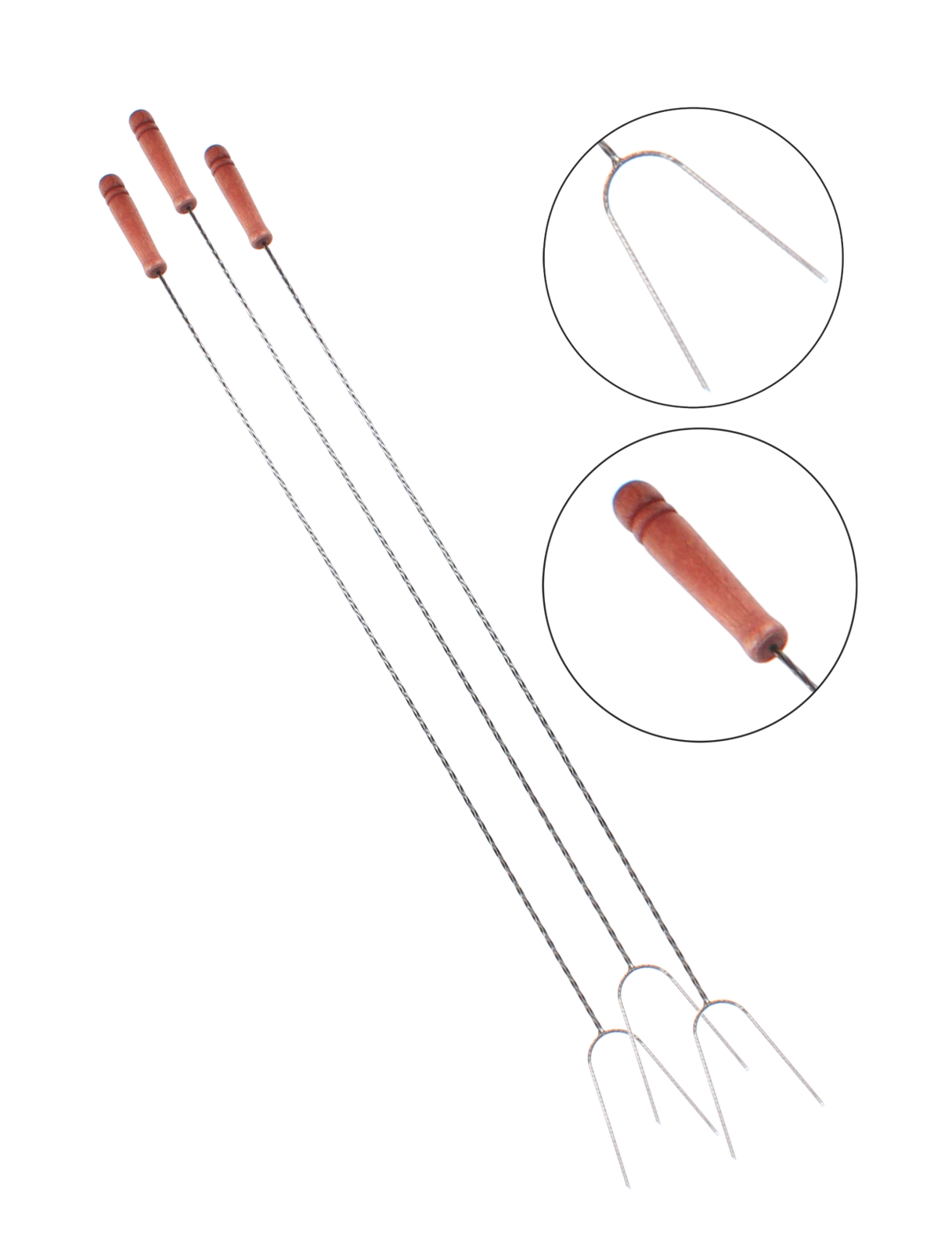 Praktické ohniskové vidlice s dlouhou rukojetí pro pohodlné a bezpečné opékání nad ohněm. Díky délce 100 cm udržíte ruce v bezpečné vzdálenosti od plamenů a snadno otáčíte a kontrolujete připravované pokrmy. Ideální pro grilování a opékání u táboráku s rodinou i přáteli.