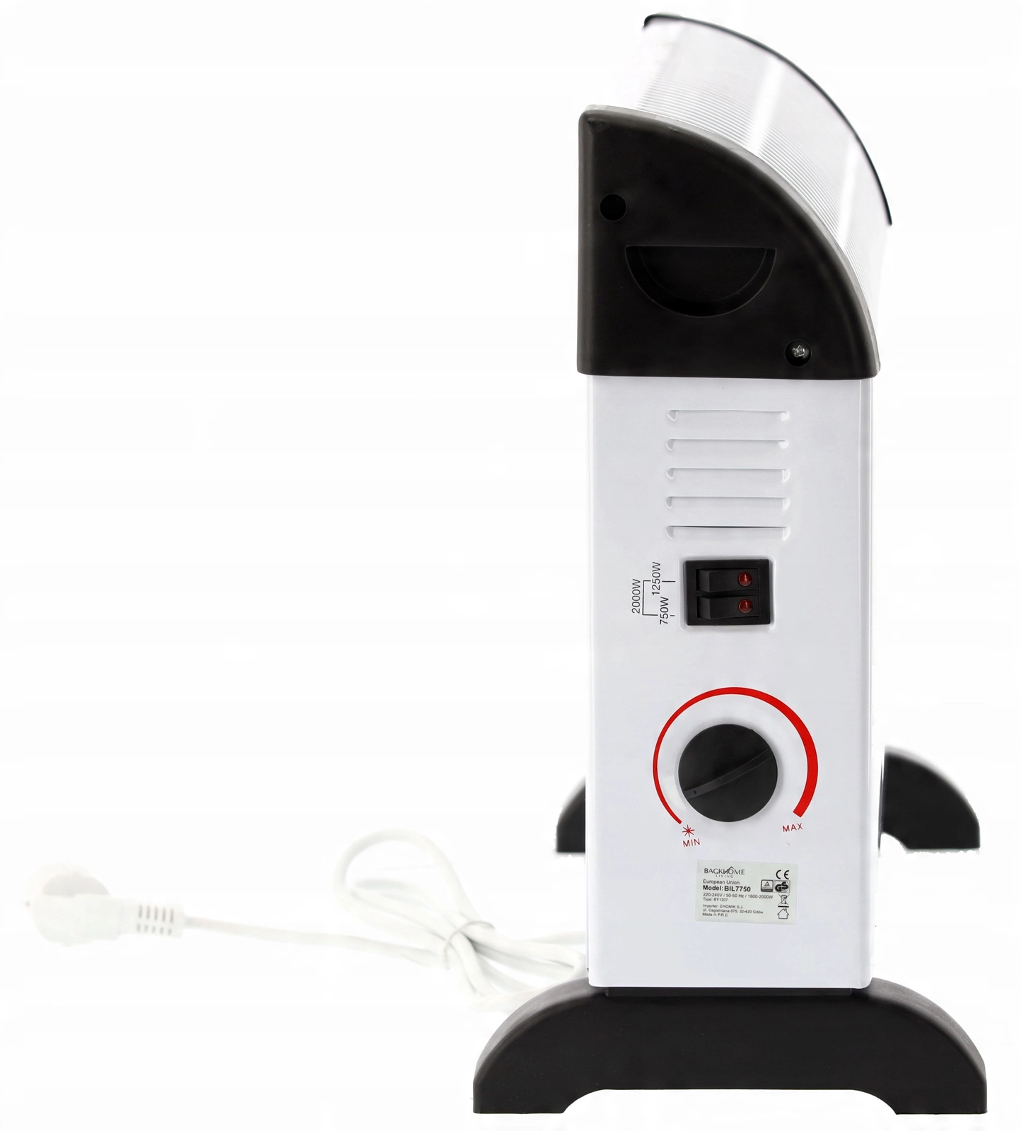 Praktické ovládání na boku přináší snadnou volbu ze tří výkonových stupňů a plynulé nastavení termostatu. Integrovaná ochrana proti přehřátí zvyšuje bezpečnost při každodenním používání. Stabilní nožky a lehká konstrukce umožňují pohodlné přenášení a umístění podle potřeby.