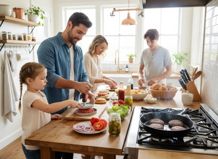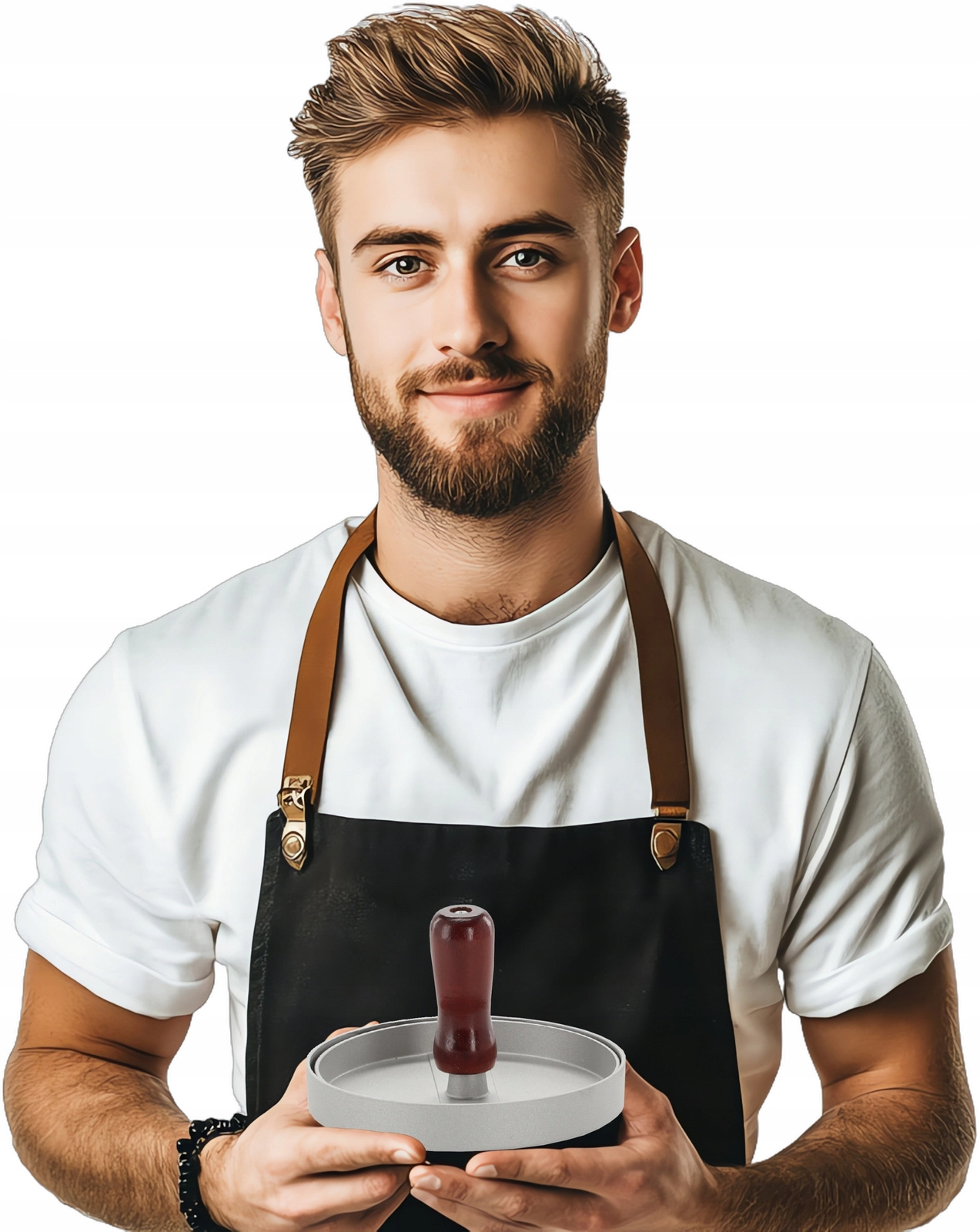 Tvarovací základna lisuje maso do stejného tvaru i tloušťky, takže se burger propeče rovnoměrně a drží tvar při smažení i grilování.