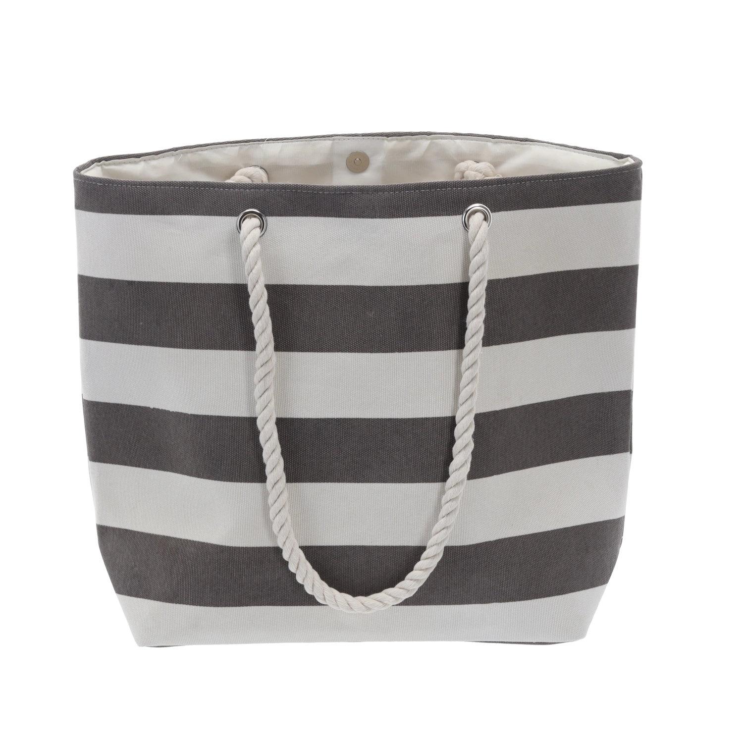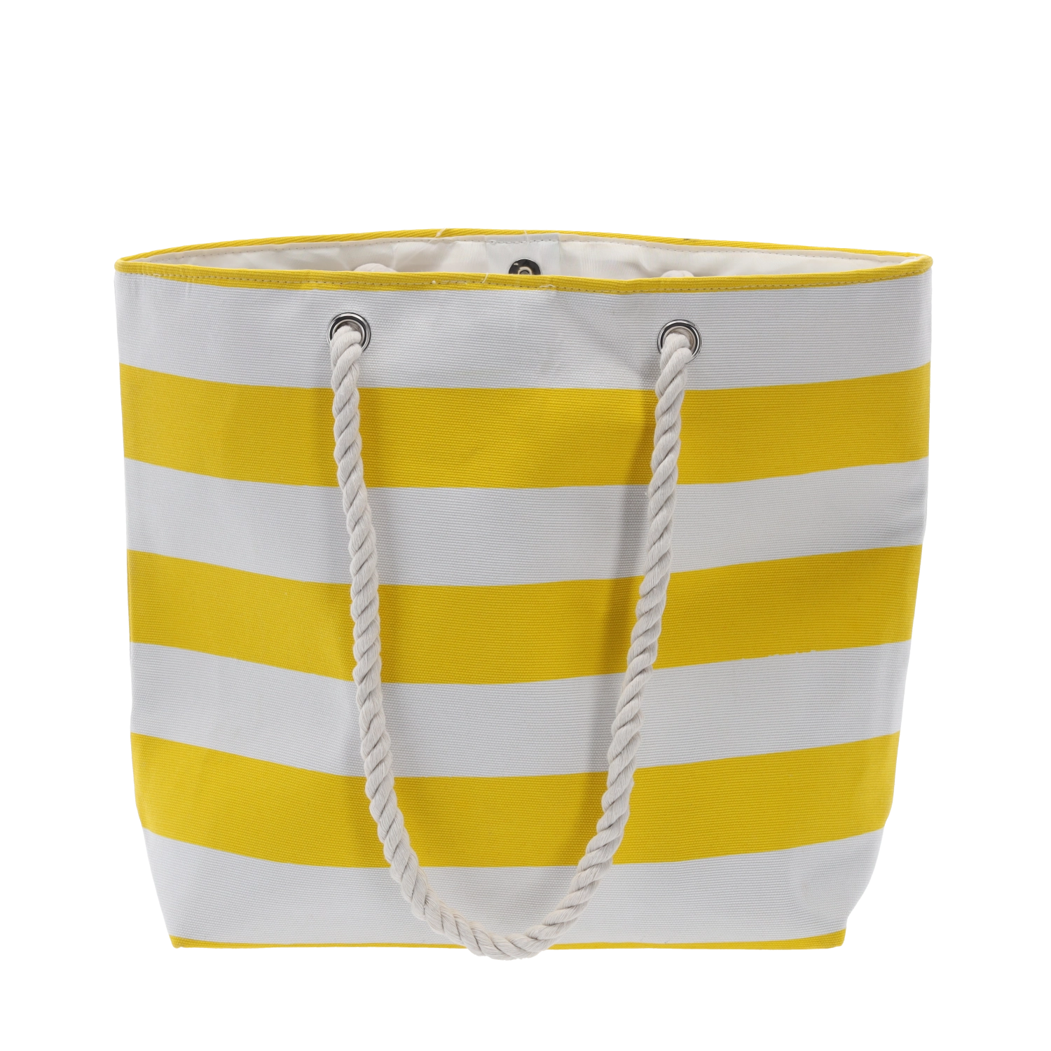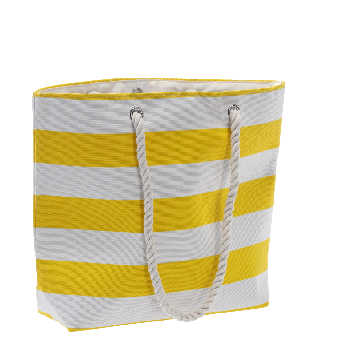 Silné kroucené provazové rukojeti pro pohodlné nošení na rameni. Kovová oka zvyšují odolnost při každodenním používání.