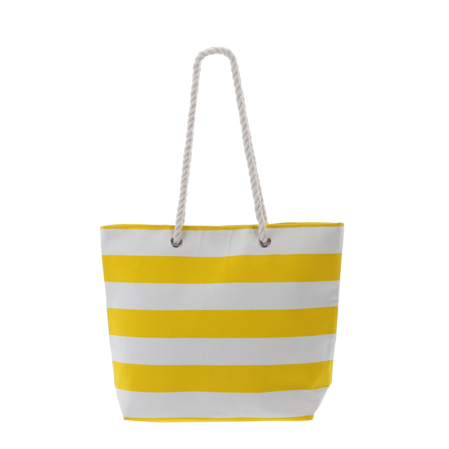 Tato prostorná pruhovaná plážová taška v letním stylu pojme ručník, opalovací krém, knížku i další nezbytnosti. Silné kroucené provazové popruhy jsou příjemné na rameni a kovová oka zvyšují odolnost při každodenním nošení. Vybrané varianty mají vnitřní kapsu a zapínání na patent pro bezpečné uložení drobností.