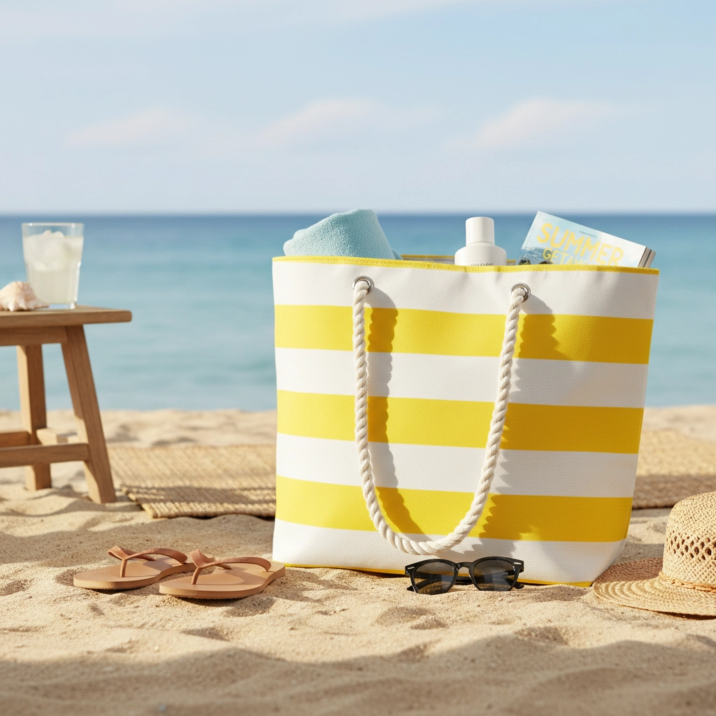 Rozměry 48 × 36 cm zvládnou ručník, opalovací krém, časopis i láhev s vodou. Vybrané modely mají vnitřní kapsu a patent pro lepší organizaci.