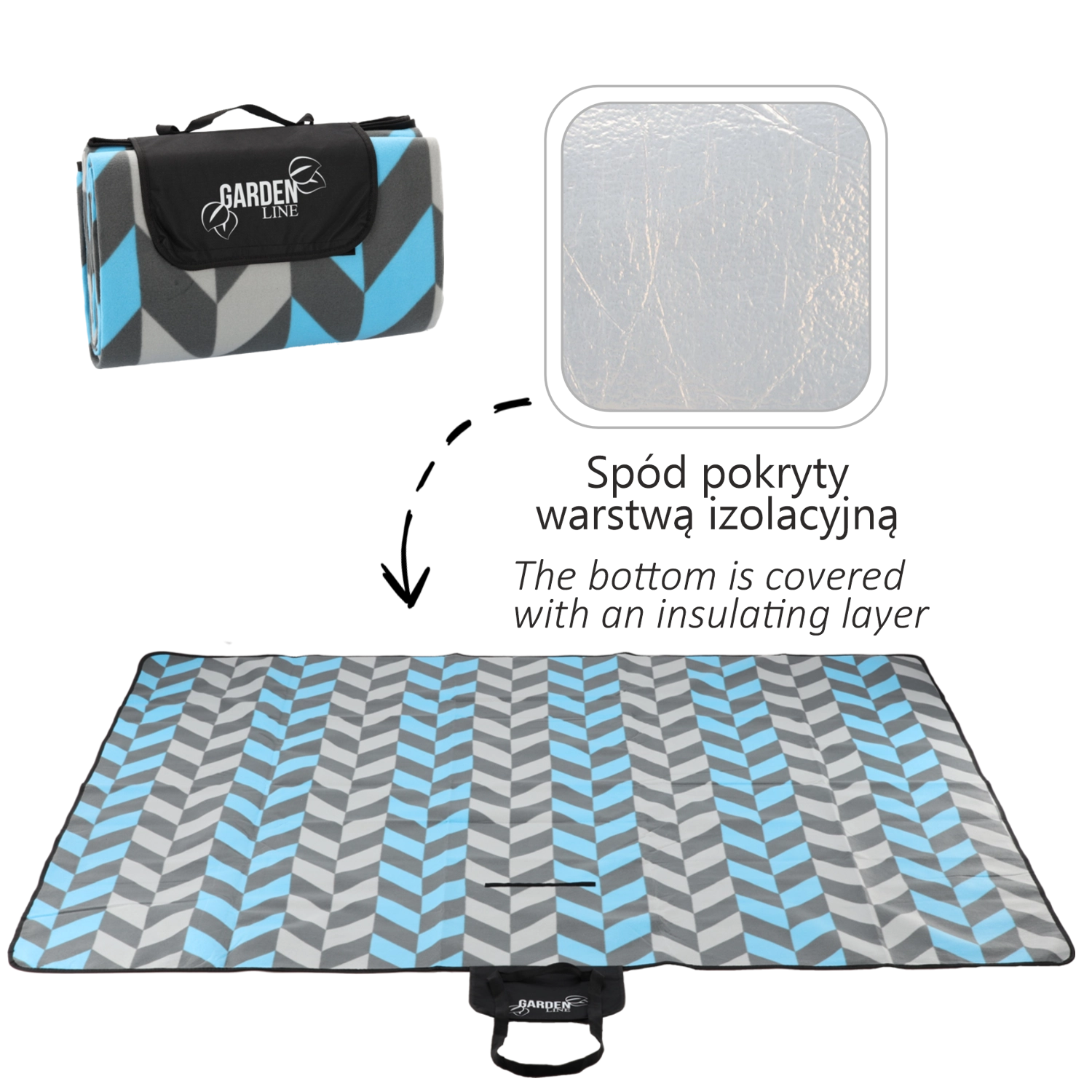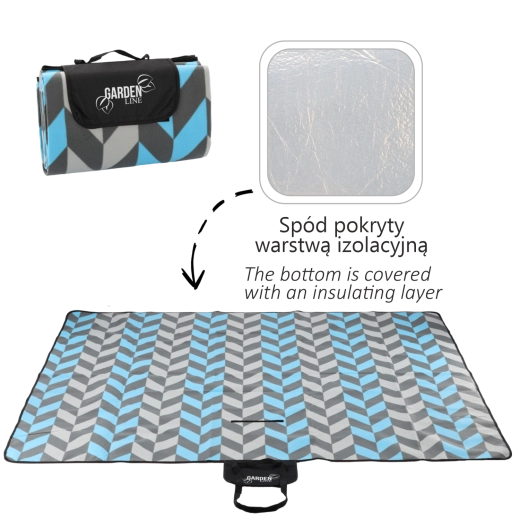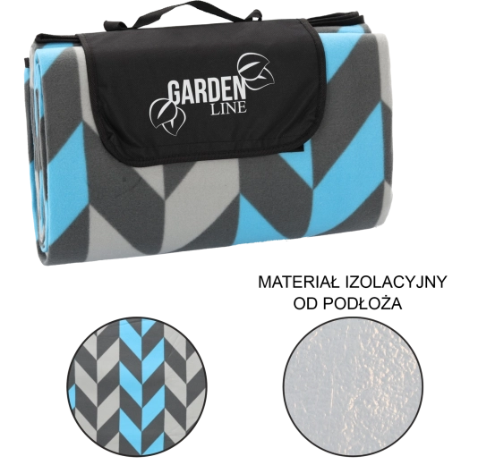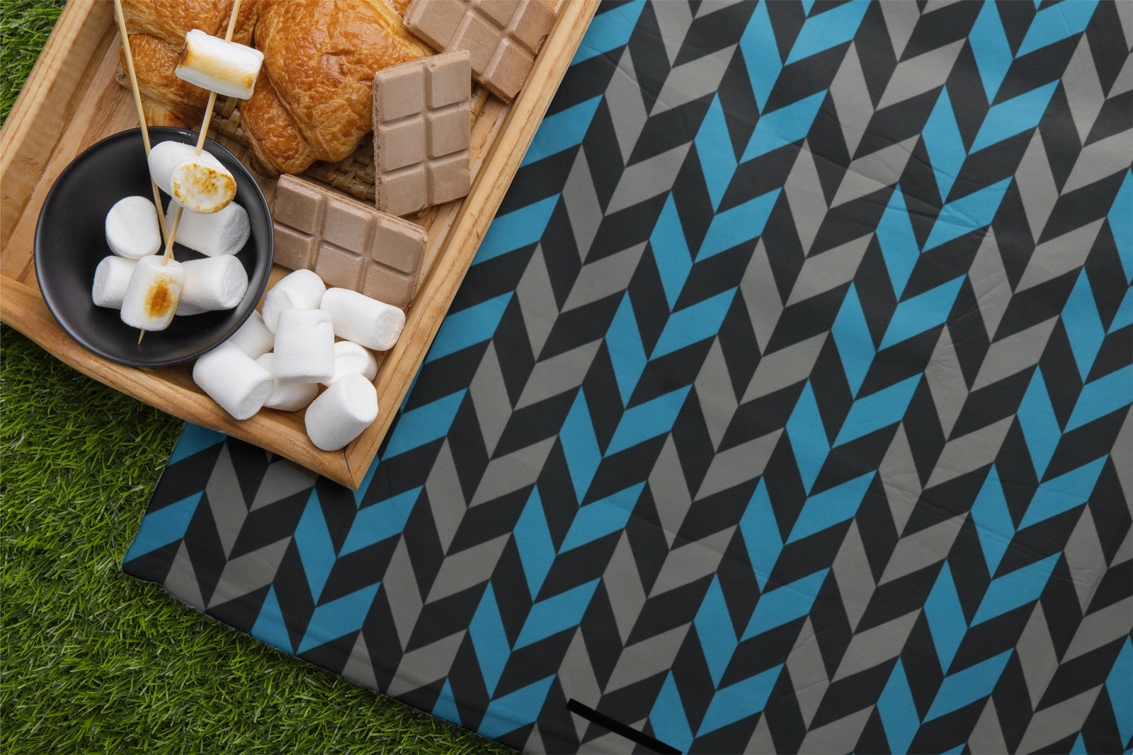 Deku snadno složíte do kompaktního balíčku se zapínací klopou, uchem a popruhem pro přenášení. Moderní vzor jolka v odstínech modré a šedé se hodí na každou příležitost a dodá vašemu pikniku styl.