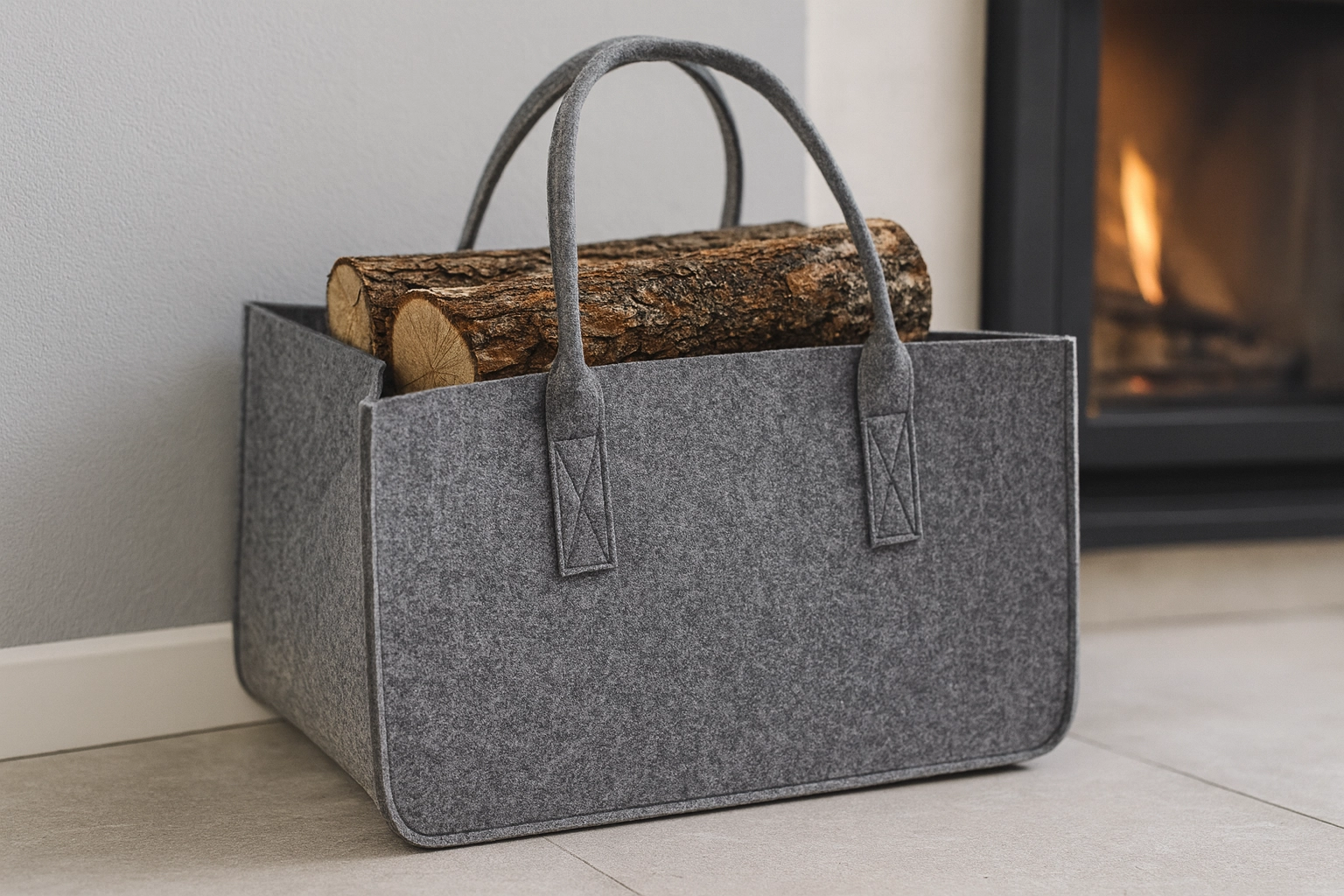 Udržujte pořádek a styl s univerzální plstěnou taškou, která kombinuje praktické využití a elegantní vzhled. Je skvělým pomocníkem při nošení dřeva ke krbu, přenášení nákupů nebo organizaci věcí v domácnosti i automobilu. Minimalistický design se hodí do každého interiéru.