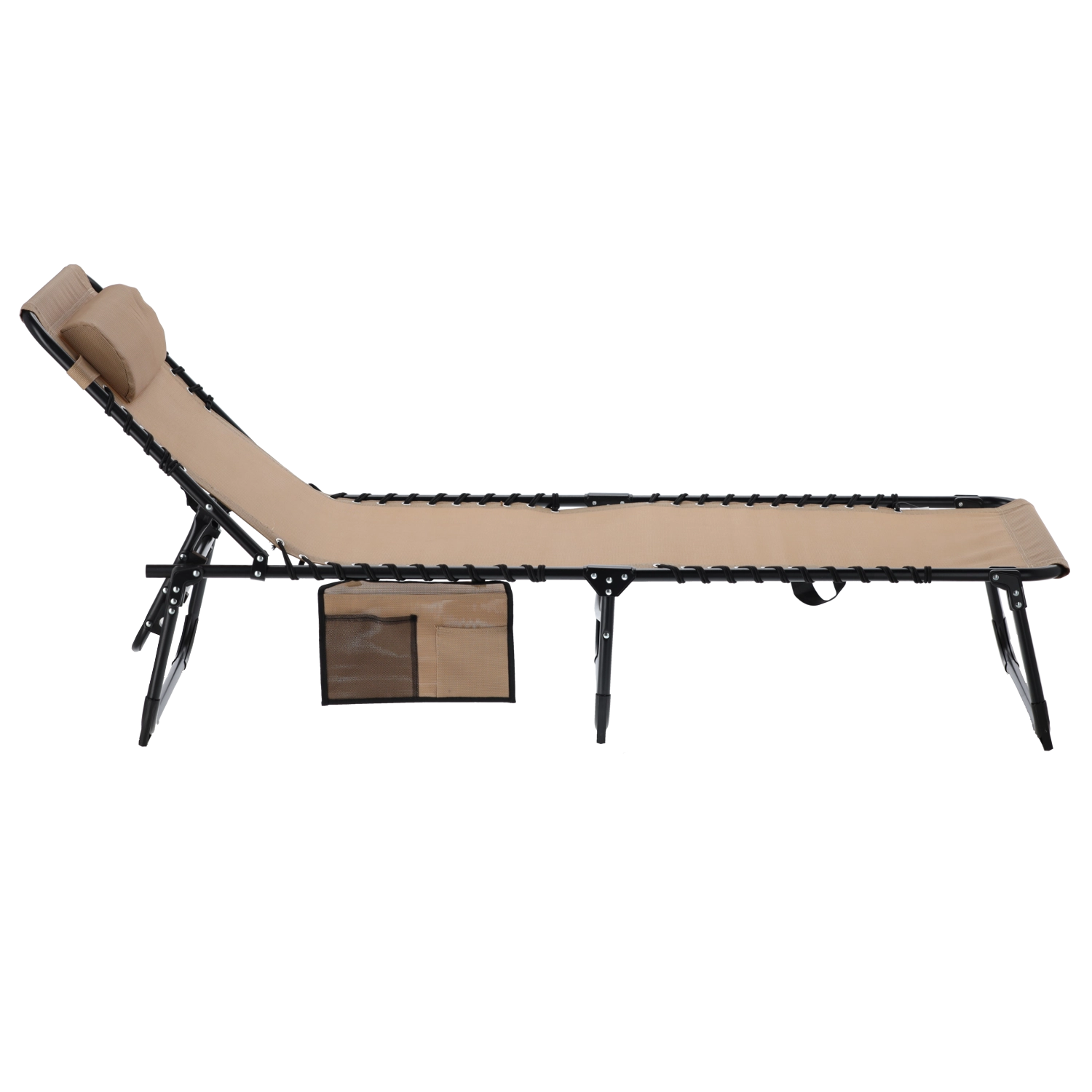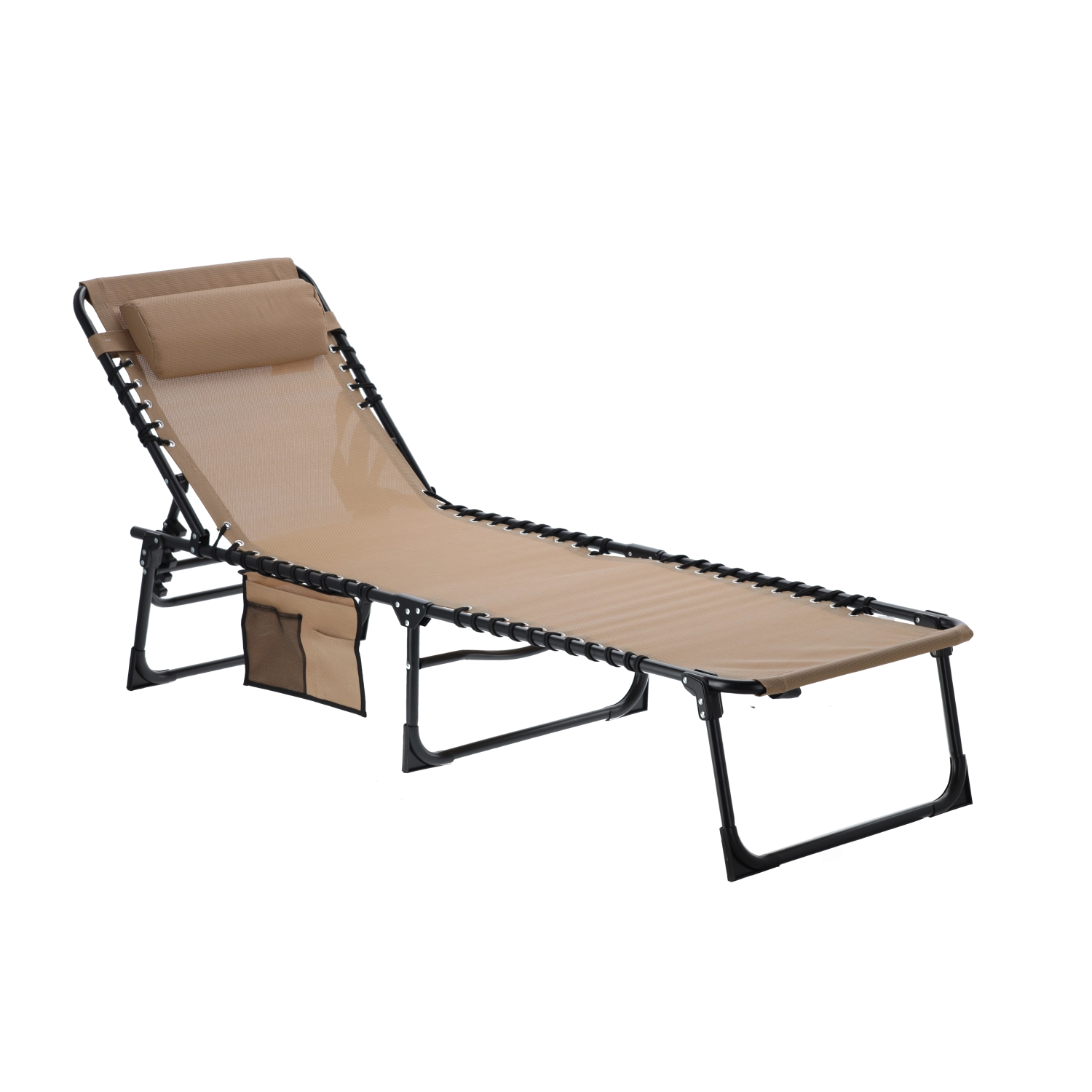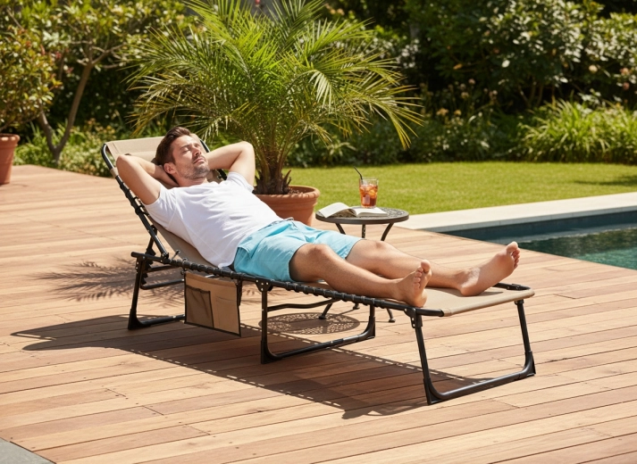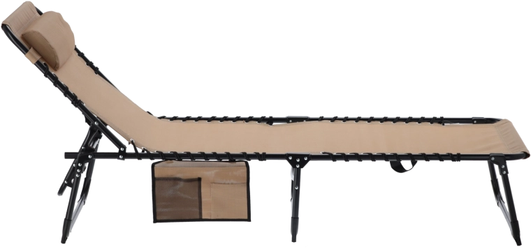 Užijte si pohodlí kdekoliv venku s tímto univerzálním lehátkem, které snadno poslouží i jako polní lůžko. Nabízí skládací konstrukci, nastavitelné opěradlo s polštářem, boční kapsu na drobnosti a odolnou textilii napnutou na pevný ocelový rám – ideální k bazénu, na terasu, do kempu i na pláž.