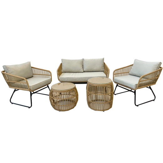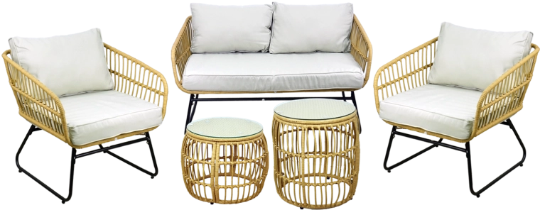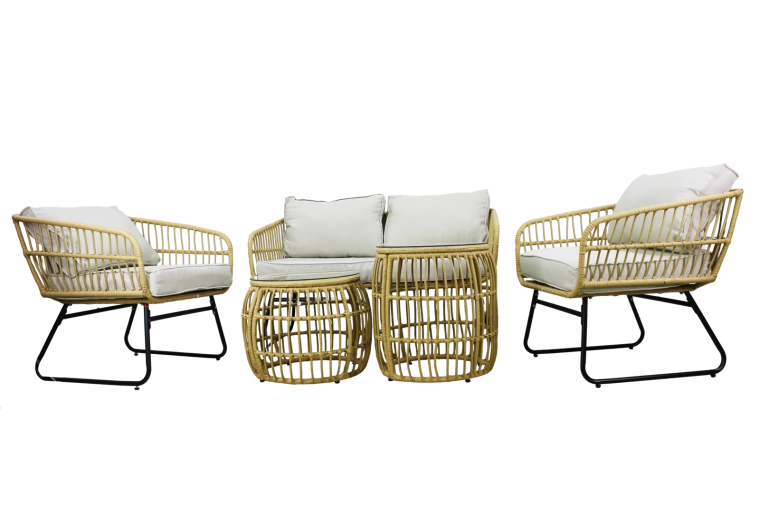 - Kompletní set pro 4 osoby: dvojsedačka, 2 křesla, 2 stolky
