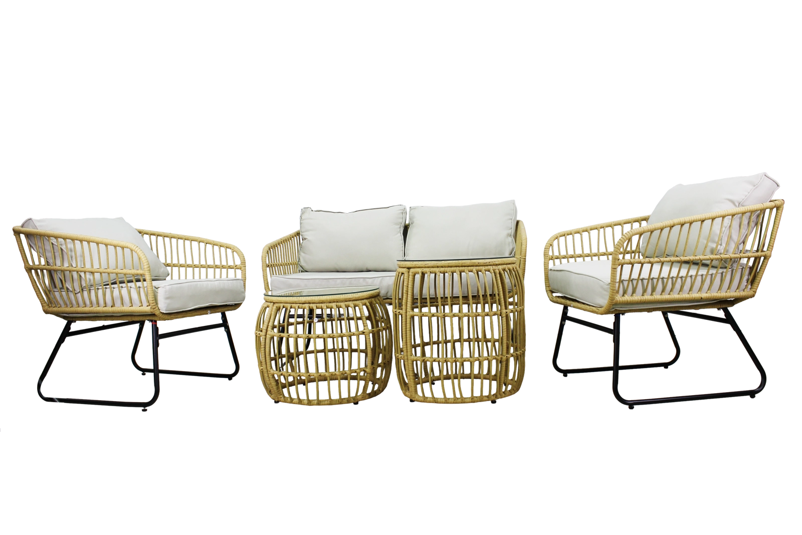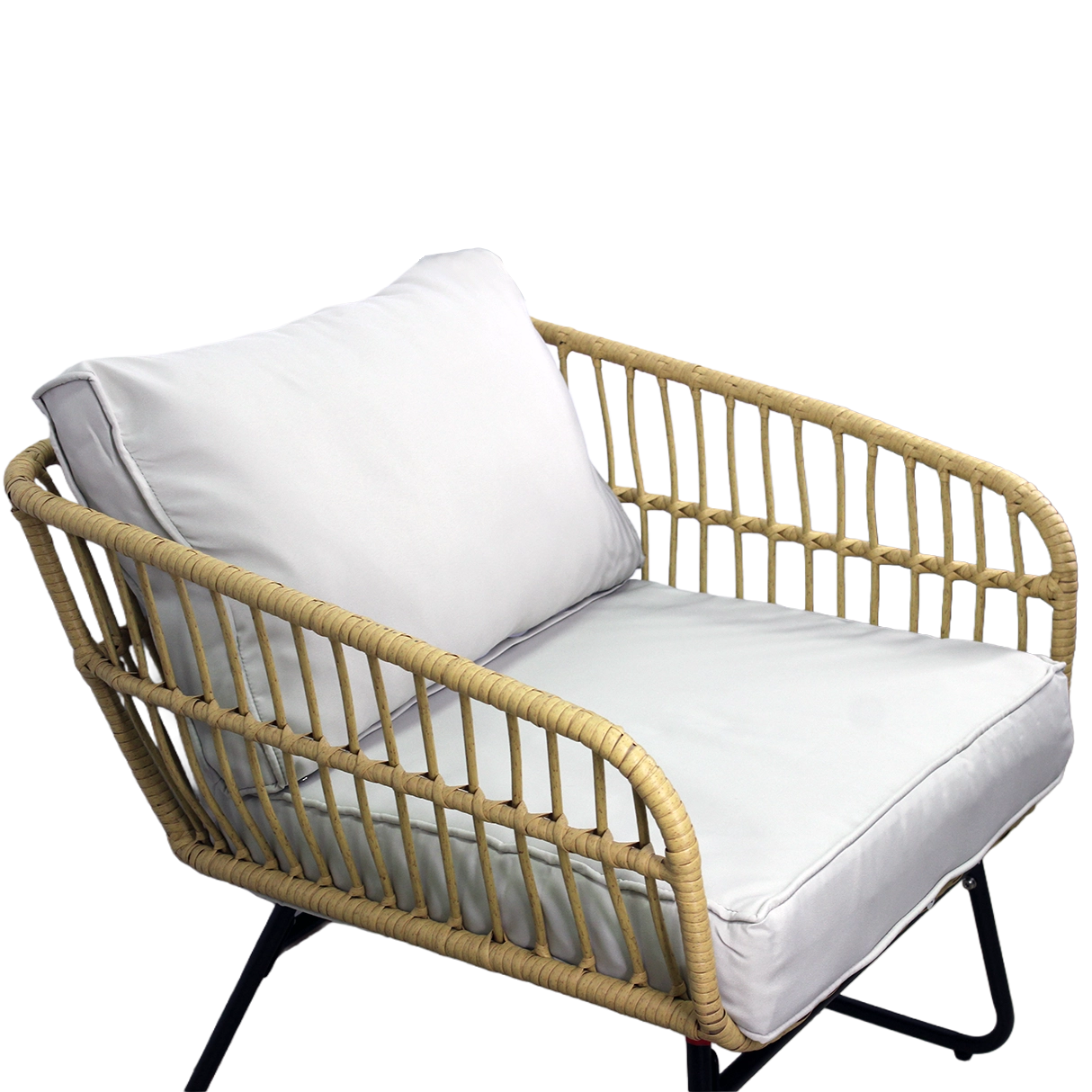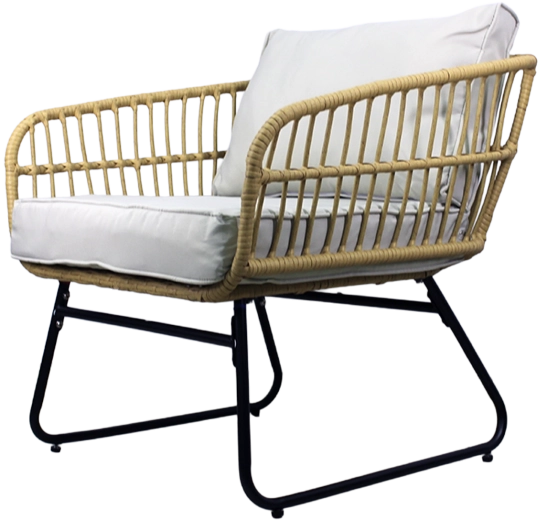 Přírodní vzhled umělého ratanu s černými kovovými nohami působí moderně a elegantně. Díky nízké hmotnosti lze sestavu snadno přemisťovat a přizpůsobit prostoru.