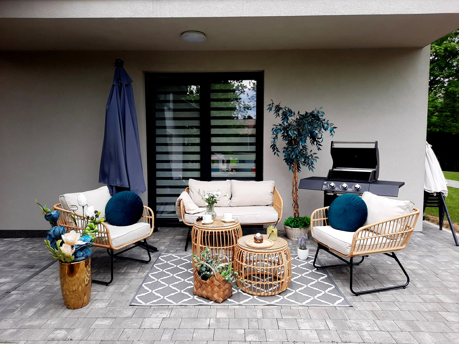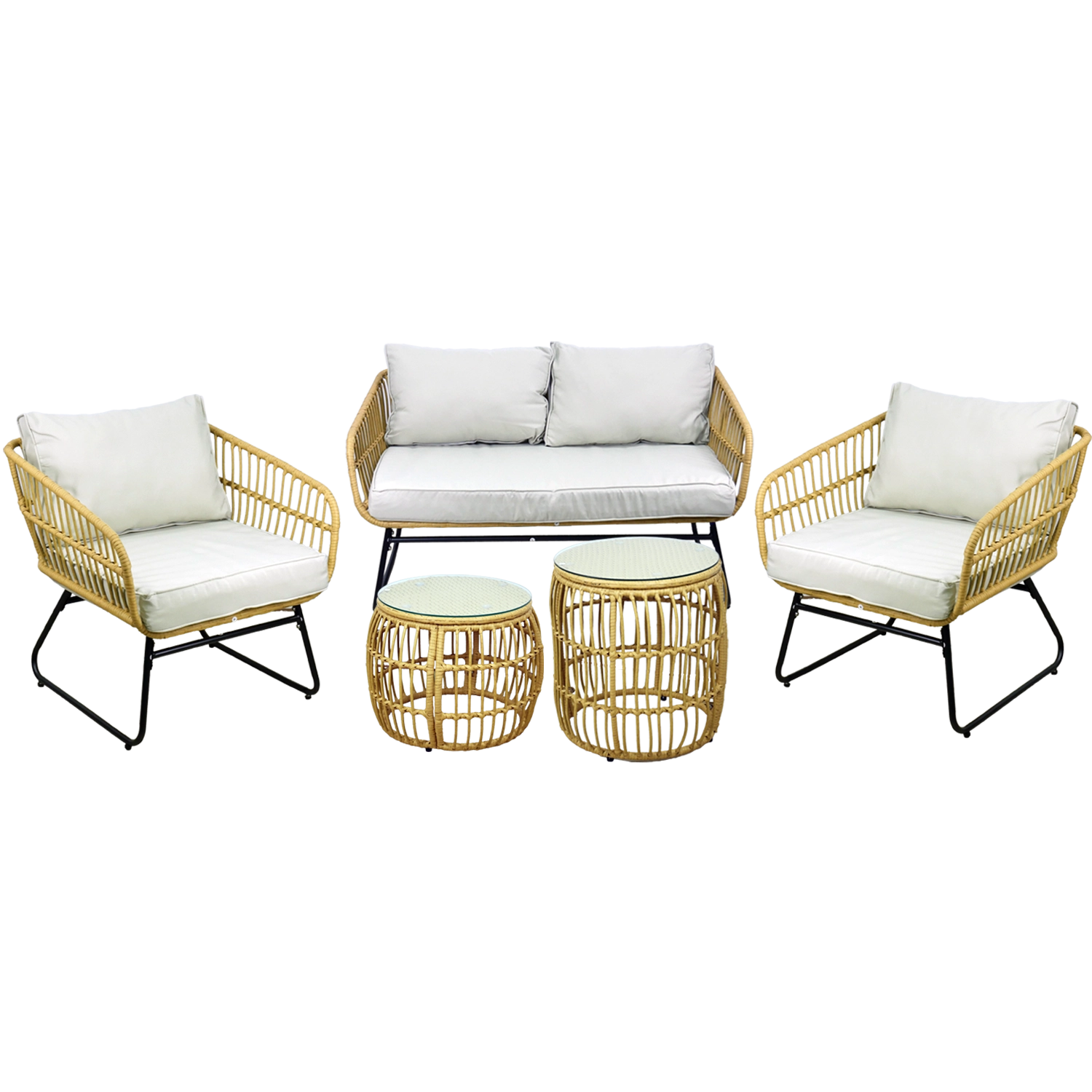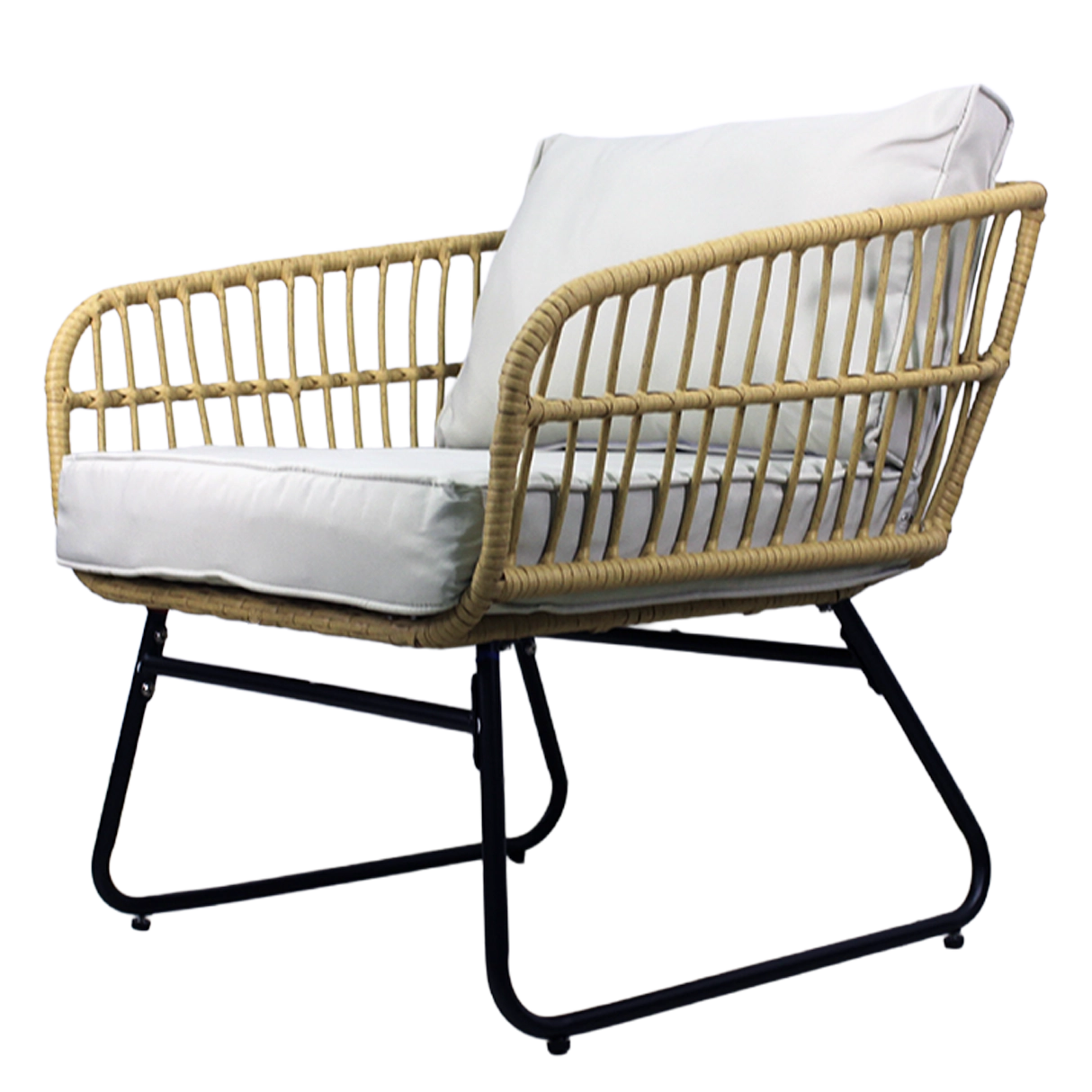 Přírodní vzhled umělého ratanu s černými kovovými nohami působí moderně a elegantně. Díky nízké hmotnosti lze sestavu snadno přemisťovat a přizpůsobit prostoru.