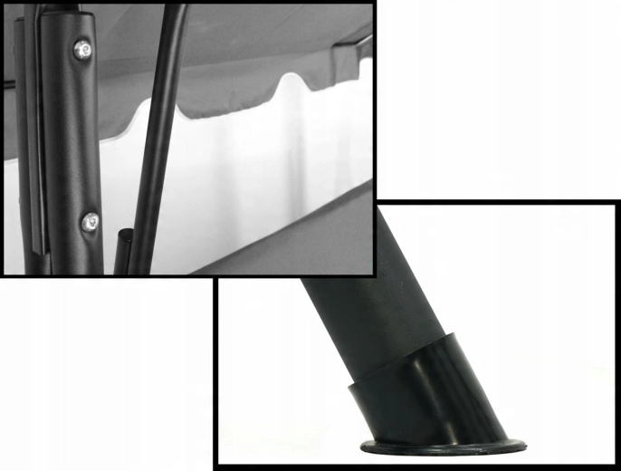 Široký, polohovatelný přístřešek chrání před sluncem a zvyšuje komfort při odpočinku na terase či v zahradě.