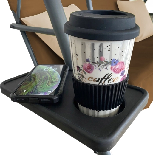 Praktické tácky u opěrek bezpečně udrží šálek, sklenici i mobil – vše máte pohodlně po ruce.