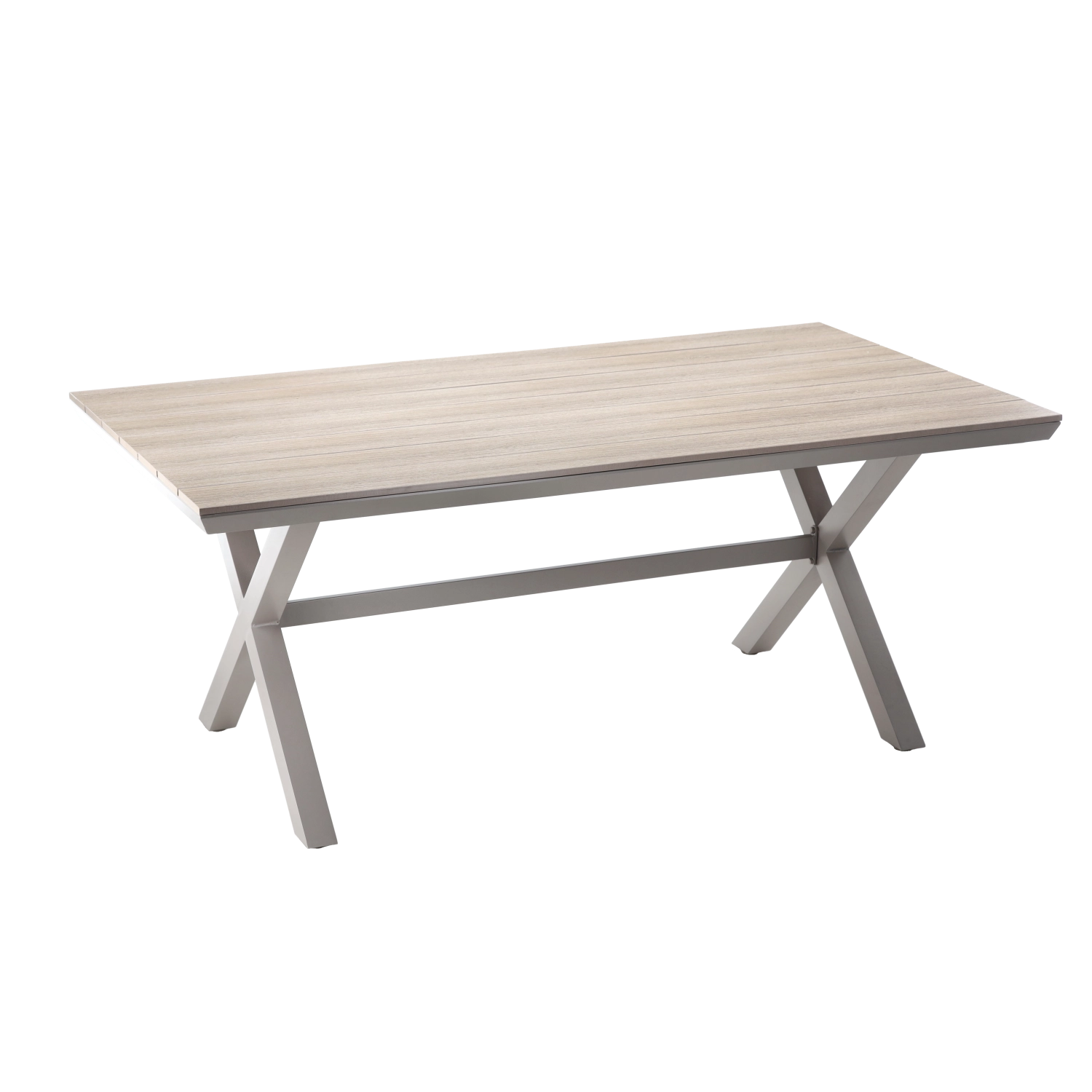 Béžový hliníkový zahradní stůl s deskou z polywoodu je skvělou volbou pro terasy, pergoly i moderní zahrady. Nabízí stabilní křížové nohy s výztuhou, odolnost proti korozi a počasí a přirozený vzhled dřeva bez nutnosti olejování.