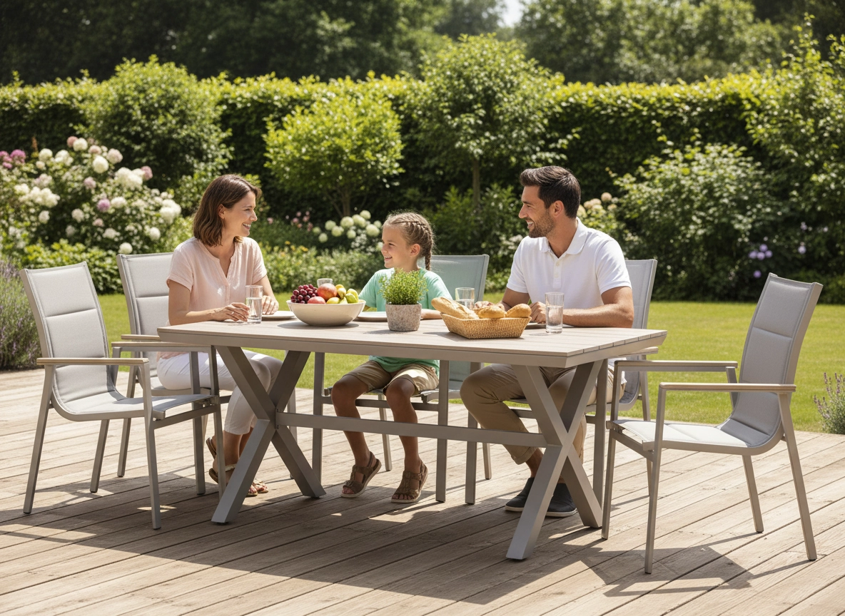 Stůl vyniká snadnou údržbou – stačí vlhký hadřík. Díky prostorné desce komfortně usadíte rodinu i hosty a užijete si pohodové stolování na čerstvém vzduchu.