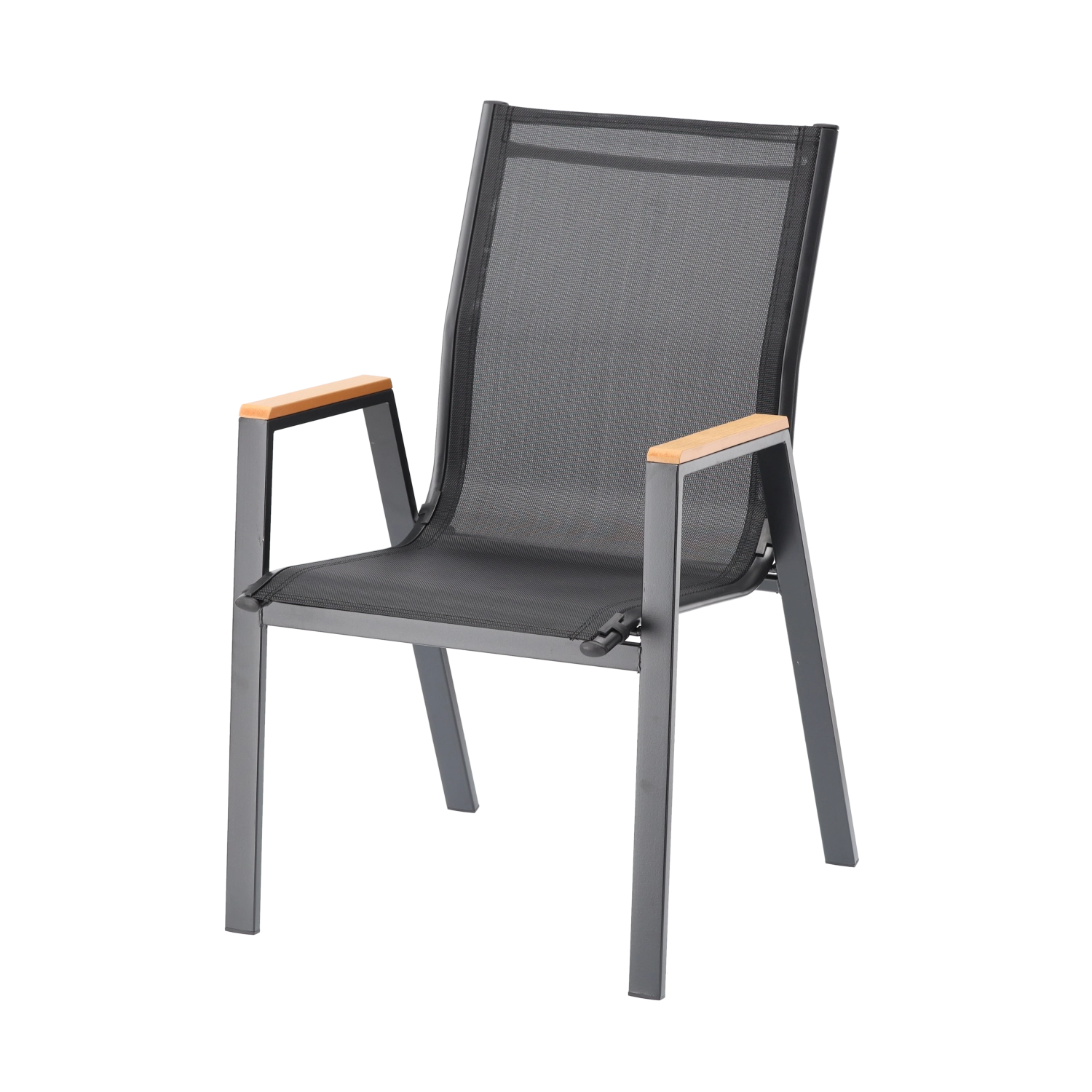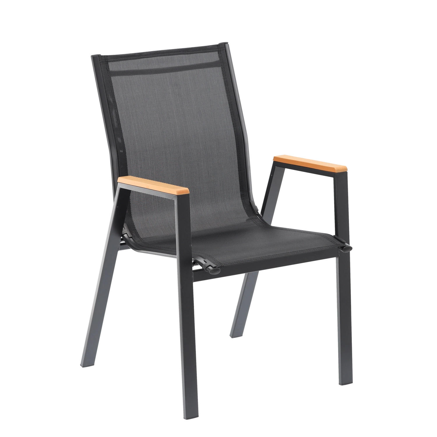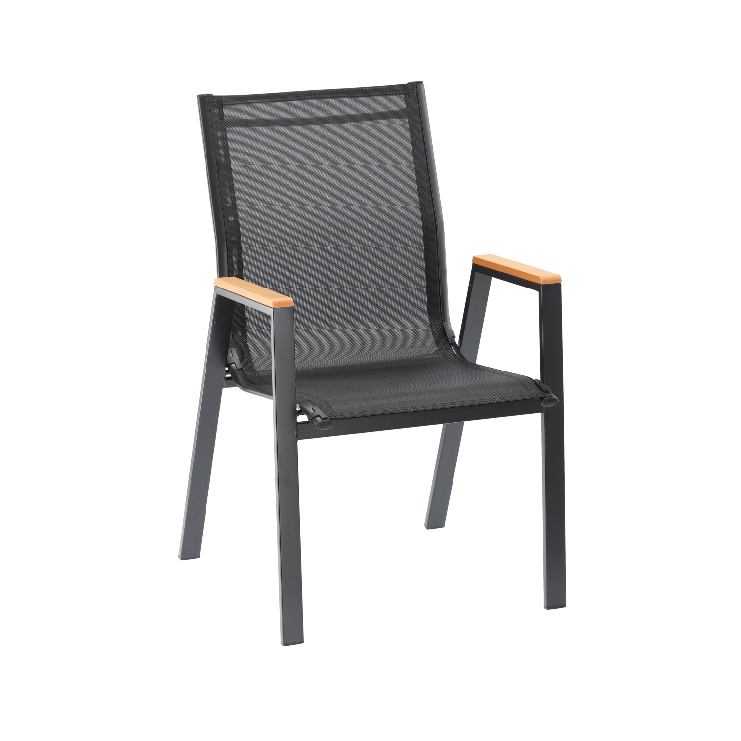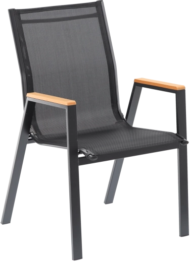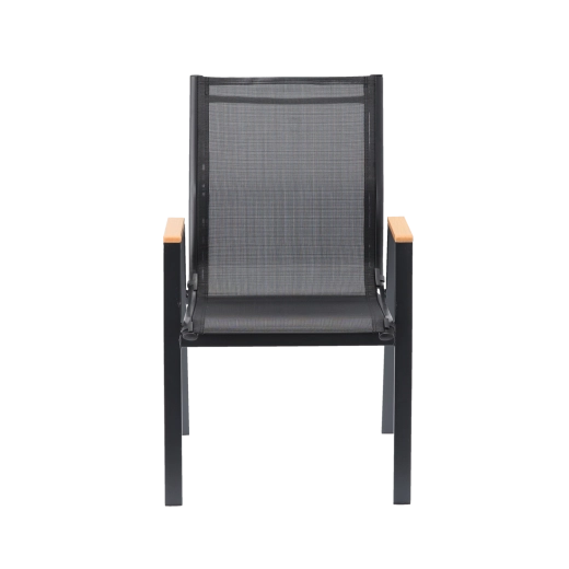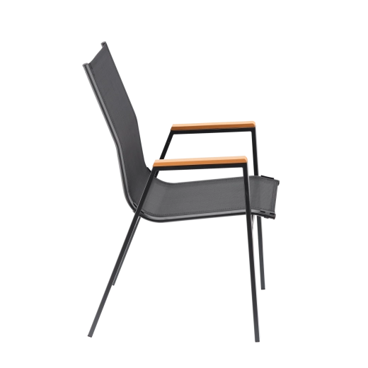 Elegantní a odolné zahradní křeslo s ocelovým rámem, pohodlným sedákem a opěrkou z prodyšné síťoviny Textilene a stylovými područkami z polywoodu. Nabízí vysoký komfort, stabilní konstrukci a odolnost vůči počasí pro terasu, balkon i zahradu.