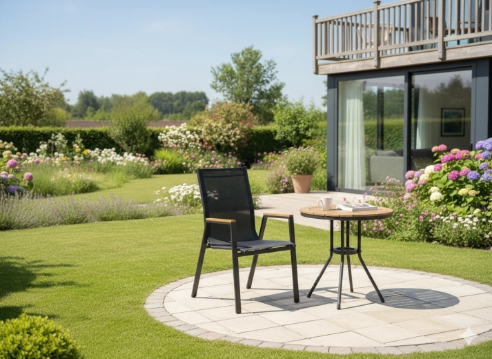 Hledáte pevné a pohodlné zahradní křeslo, které bez problému zvládne každodenní používání venku? Tento model kombinuje ocelový rám s práškovým lakem, síťovinu Textilene 2×1 s vycpávkou pro lepší pohodlí a područky z polywoodu, které vypadají jako dřevo, ale nevyžadují náročnou údržbu.