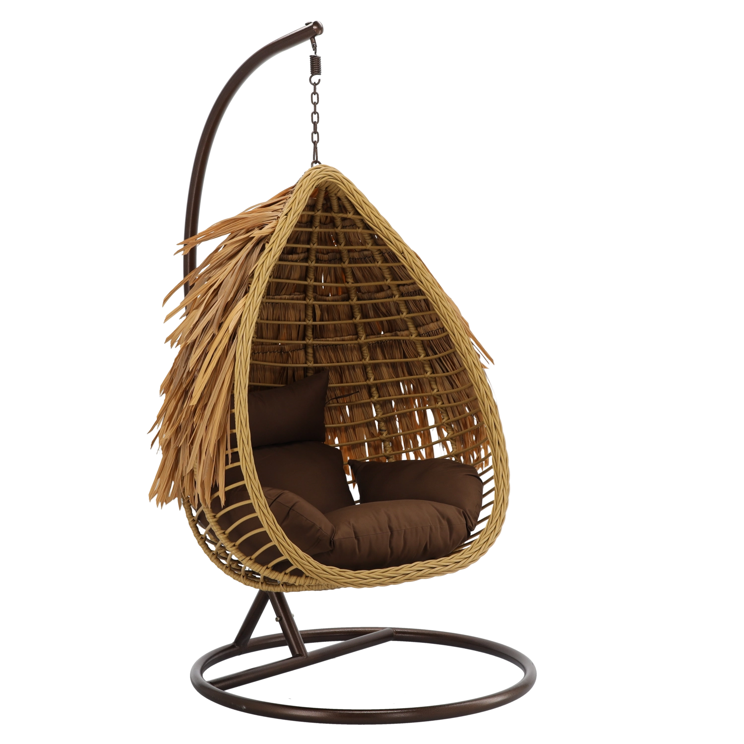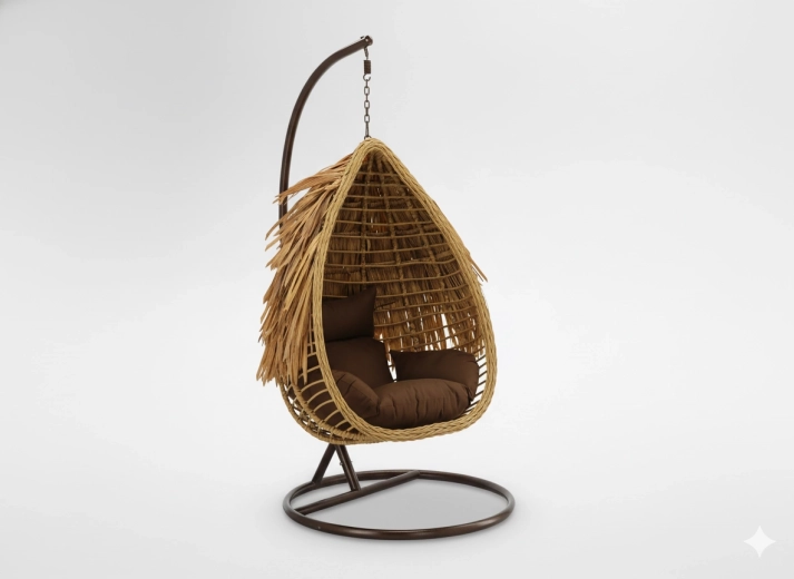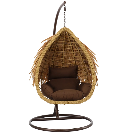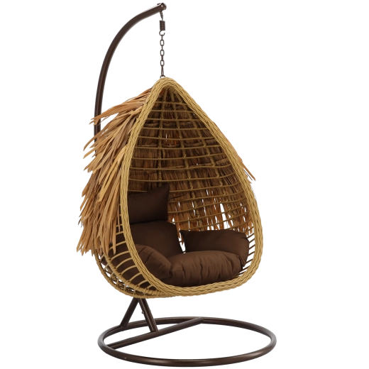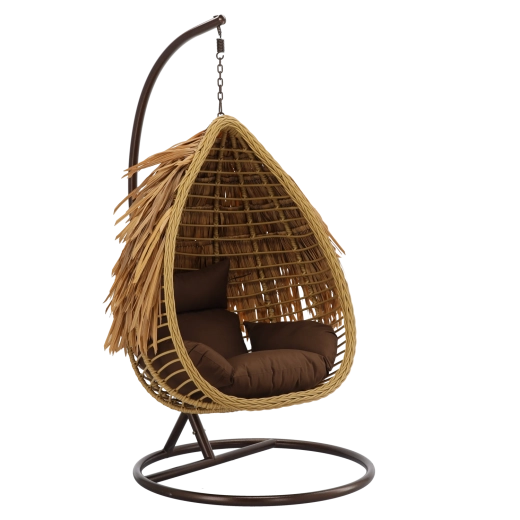 Užijte si ničím nerušený odpočinek v elegantním závěsném křesle Aztec. Kombinuje přírodní ratanový vzhled, měkký hnědý polštář a stabilní kovovou konstrukci. Skvěle se hodí na terasu, balkon i do interiéru laděného v přírodním stylu a poskytne maximální pohodlí při každodenní relaxaci.
