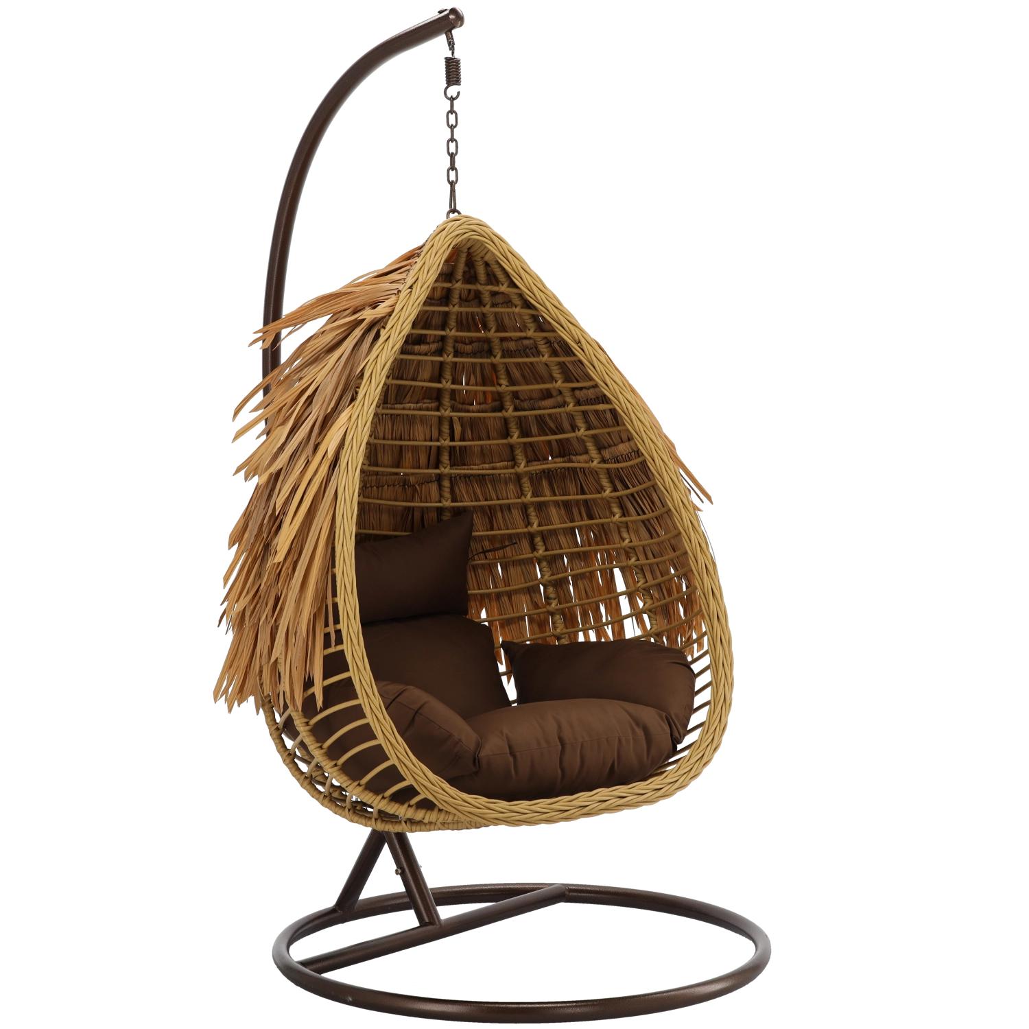 Závěsné křeslo Aztec vnese do vašeho domova či zahrady špetku boho atmosféry a útulný koutek pro relax. Prostorný kapkovitý koš z odolného výpletu vytváří příjemné soukromí, zatímco silné hnědé polstrování zaručuje dlouhotrvající komfort. Elegantní kovový stojan s kruhovou základnou se postará o bezpečné houpání i při delším posezení.
