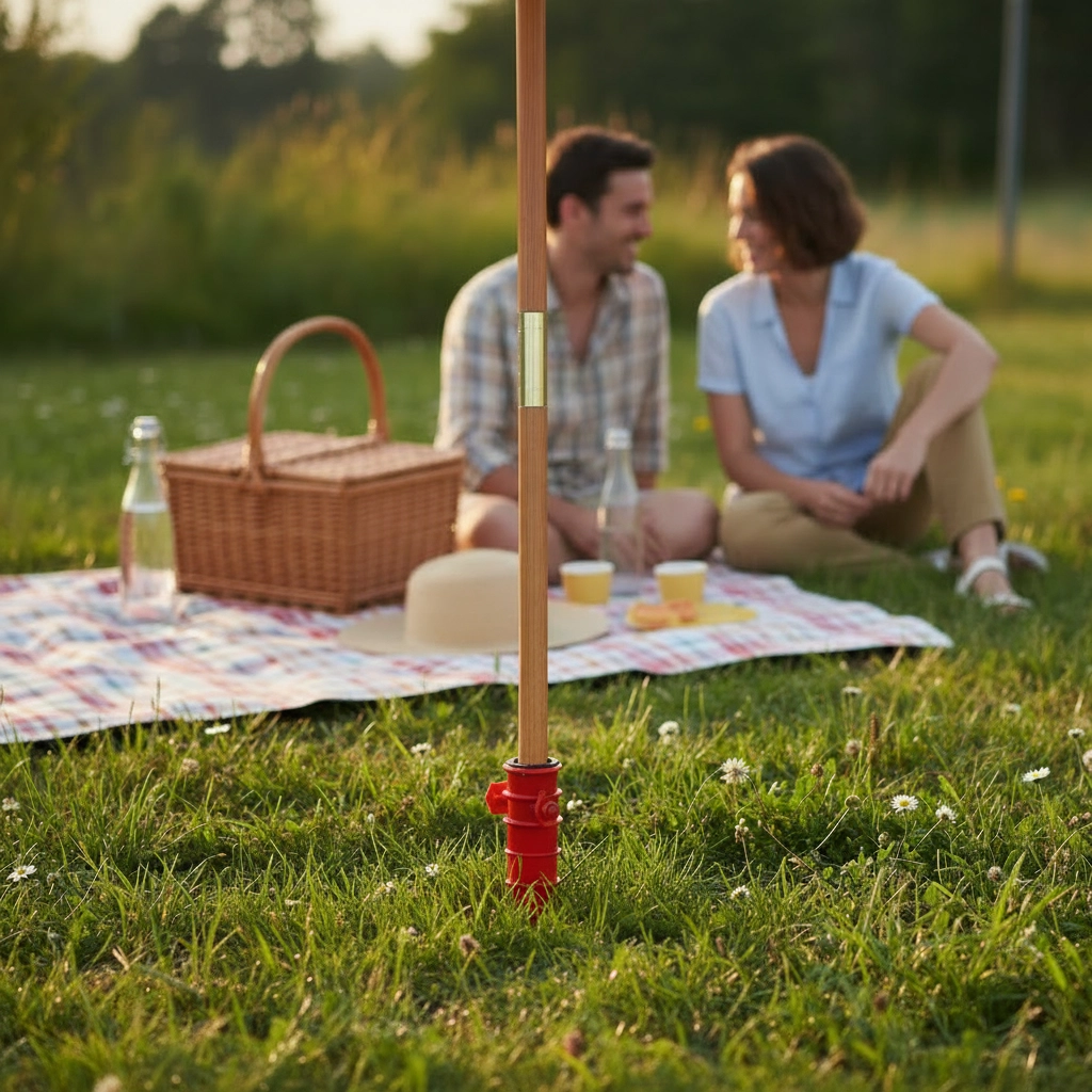 Už žádné viklání slunečníku v písku nebo v zemi. Tento vrutový stojan jednoduše zašroubujete do podkladu a nasadíte tyč slunečníku – hotovo během chvilky. Kompatibilita 19–32 mm pokrývá většinu běžných modelů, takže je ideální na pláž, zahradu i kemp.