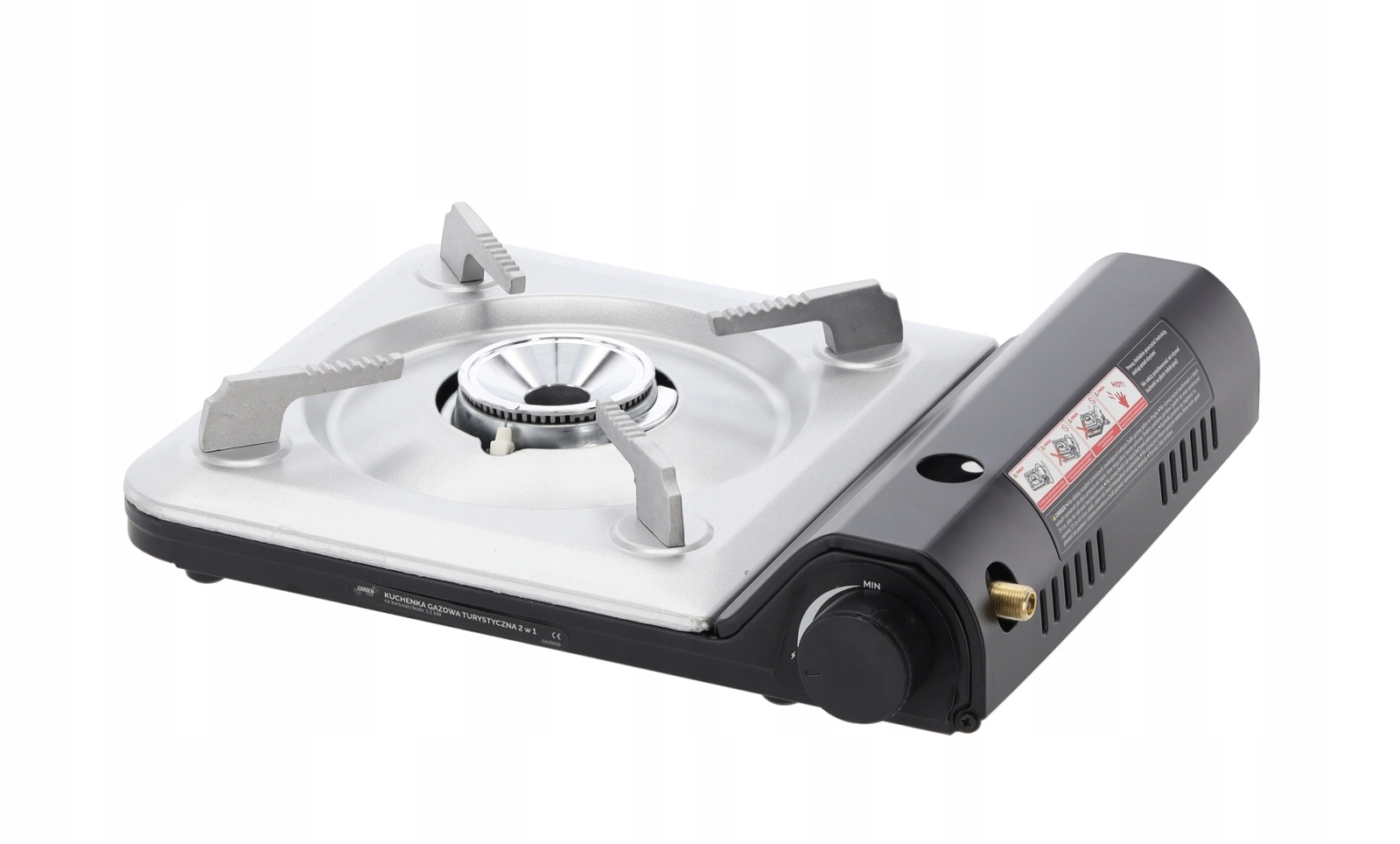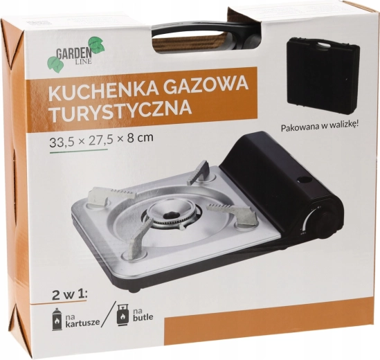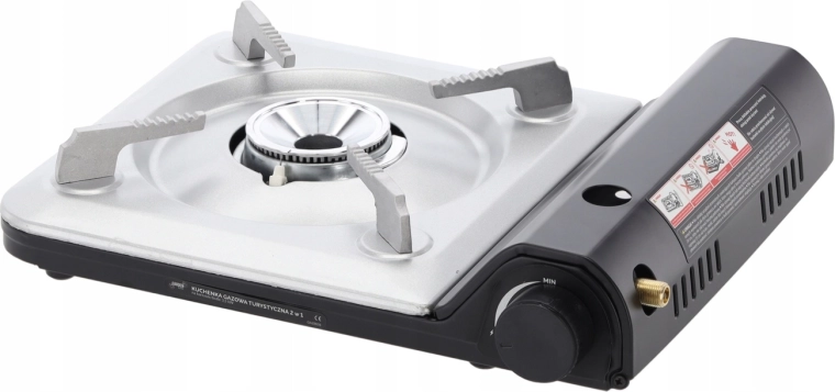 Univerzální turistický plynový vařič 2v1 pro vaření v přírodě i doma. Funguje na plynové kartuše i PB láhve, nabízí výkon 3,5 kW, bezpečný piezo zapalovač a praktické přepravní pouzdro pro snadné přenášení.