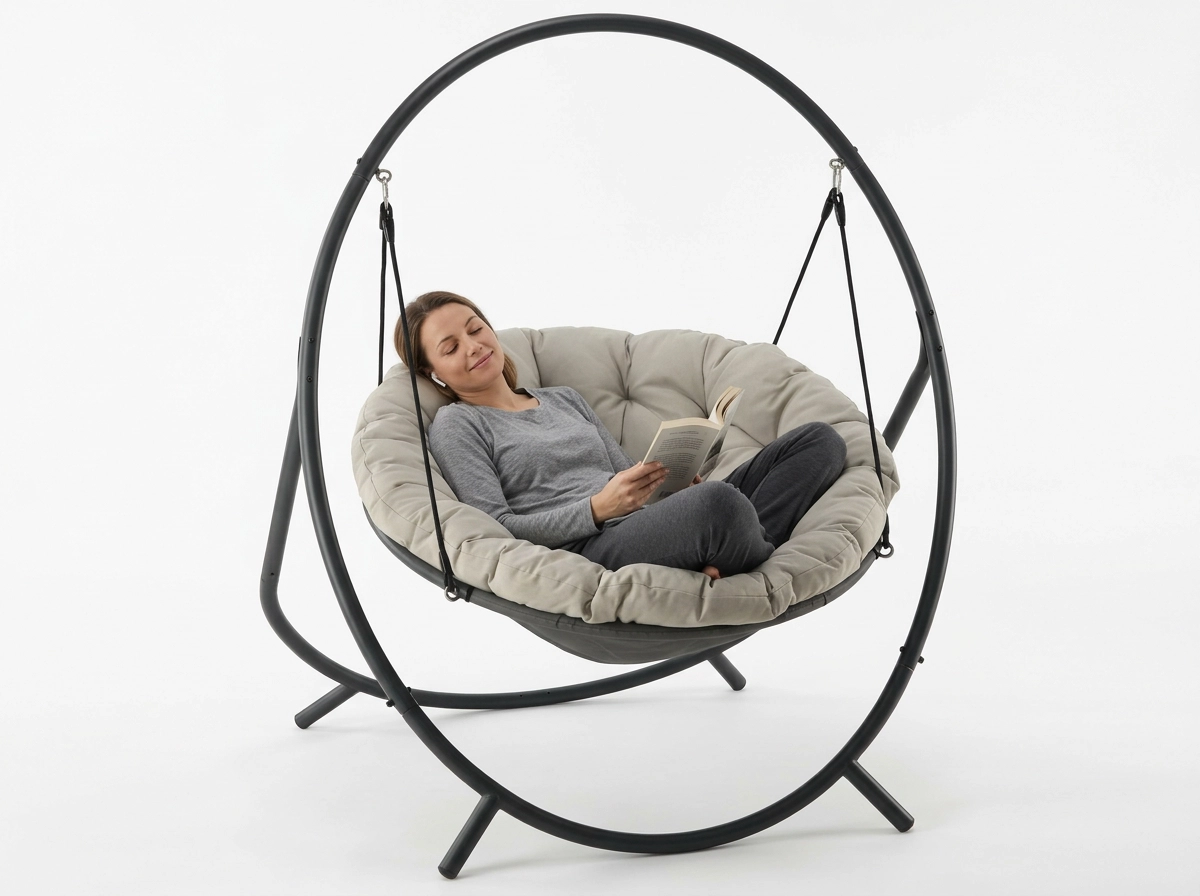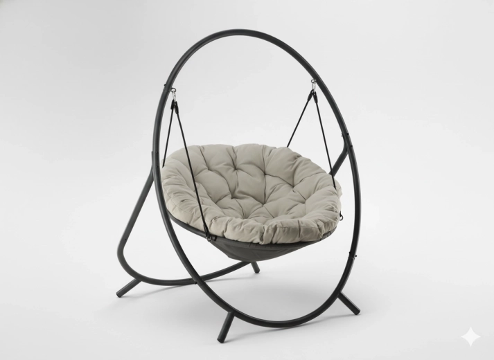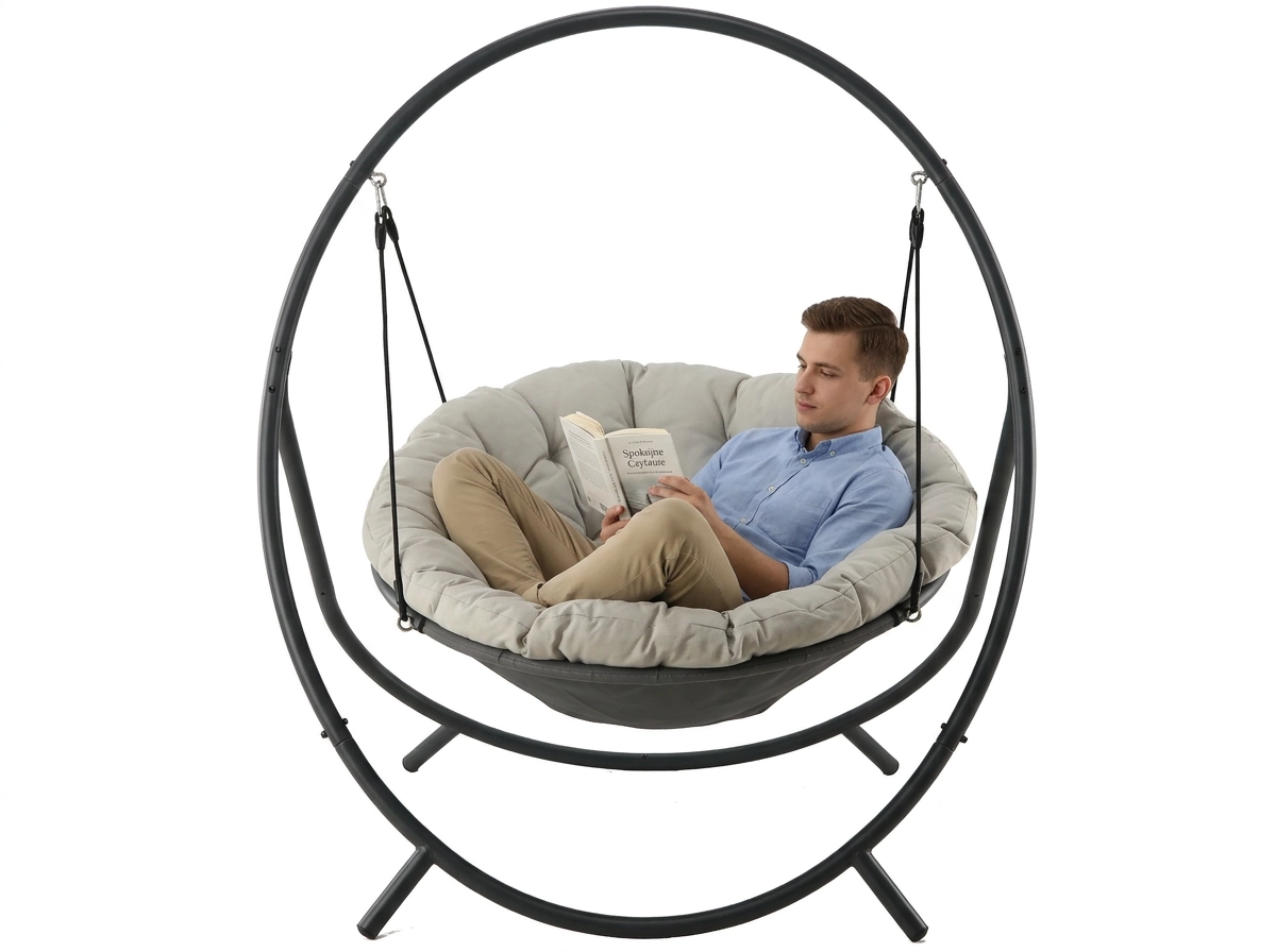 Odolná ocelová konstrukce se závěsnými popruhy zajišťuje pevnost, stabilitu a dlouhou životnost i při pravidelném používání venku.