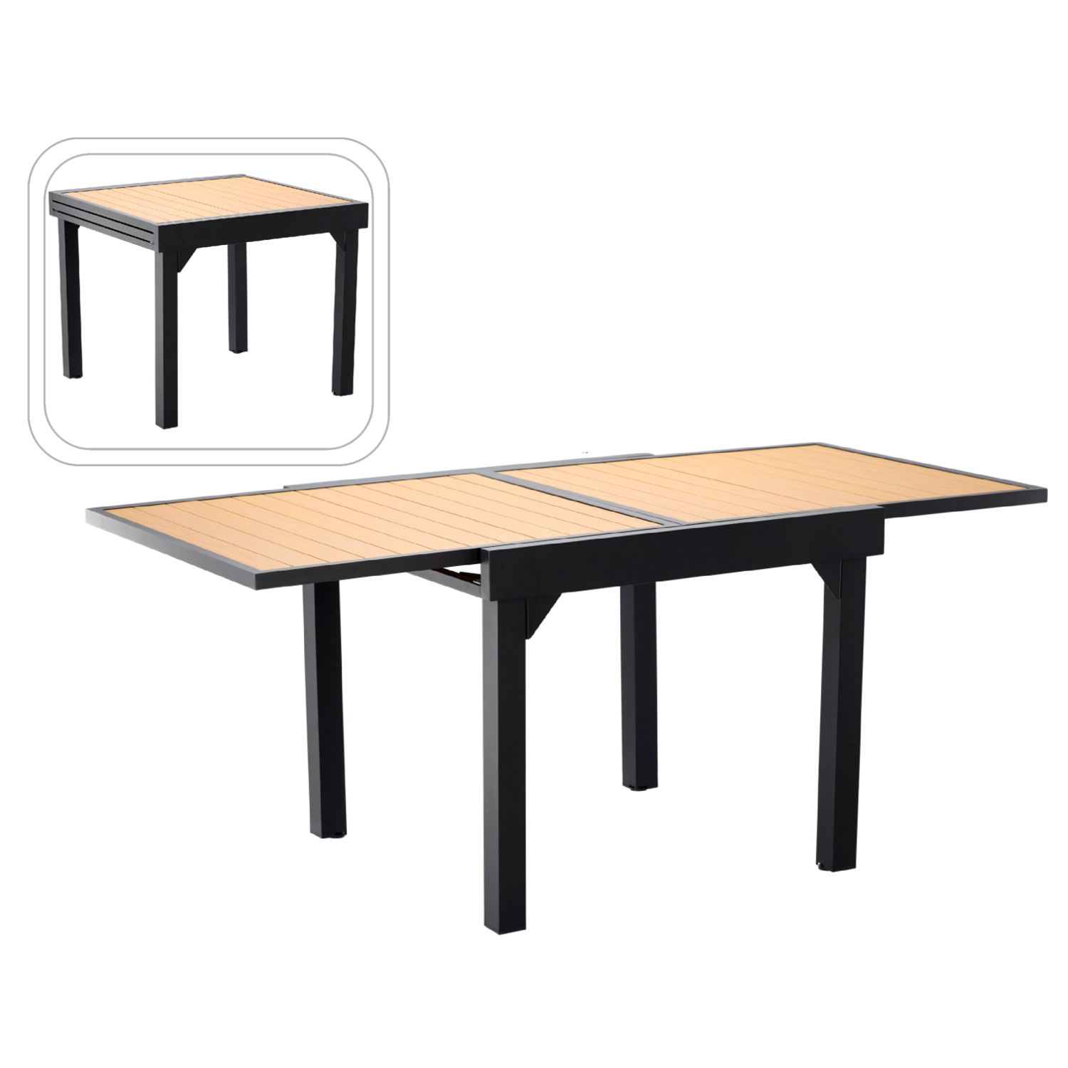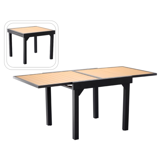 Užijte si pohodlné stolování pod širým nebem s rozkládacím hliníkovým stolem Alex. Kovový rám s práškovým lakováním odolá povětrnosti i korozi, zatímco deska s termotransferovým potiskem věrně napodobuje přírodní dřevo a dodá prostoru moderní, nadčasový vzhled.