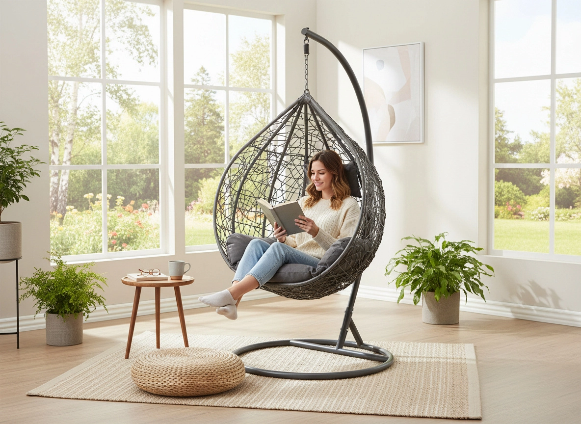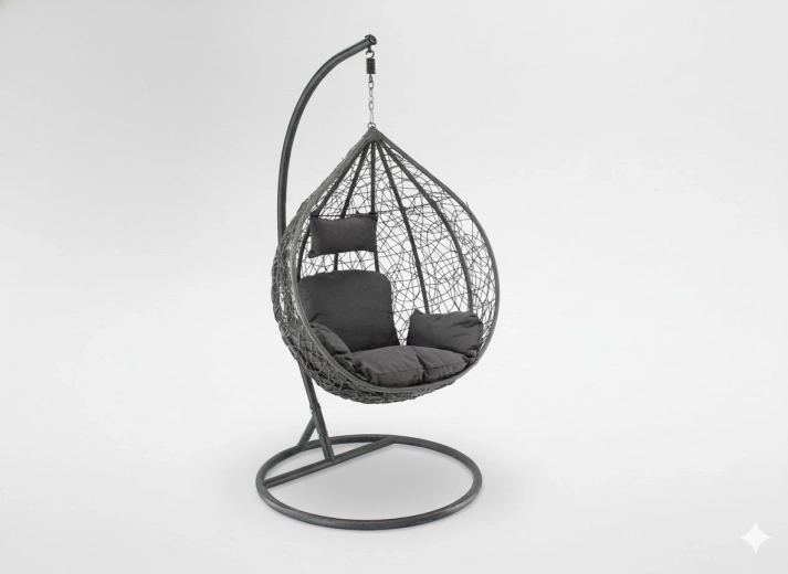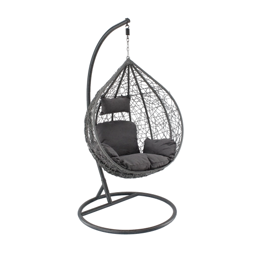 Elegantní závěsné křeslo v jednotném tmavě šedém provedení přinese do vaší relax zóny maximální pohodlí a útulnou atmosféru. Robustní ocelový rám zajišťuje stabilitu a bezpečnost, zatímco prostorné sedadlo s měkkou poduškou poskytuje komfort pro každodenní odpočinek.