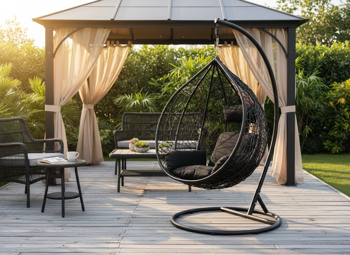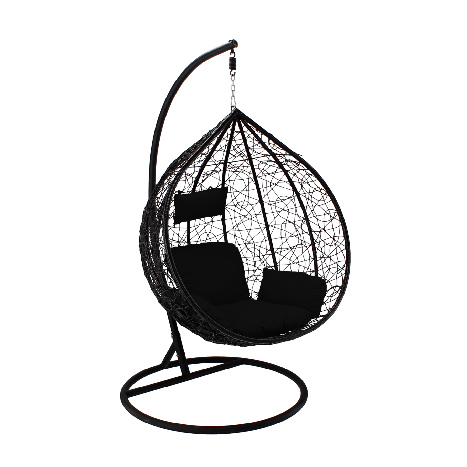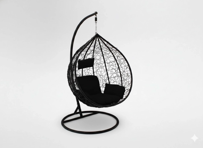 Toto závěsné vajíčkové křeslo spojuje moderní design s praktičností. Díky pevné ocelové konstrukci a výpletu z technoratanu odolá povětrnostním vlivům a zachová si vzhled po dlouhá léta. Černá barva snadno ladí s jakýmkoli stylem a vytváří útulné místo pro relax.