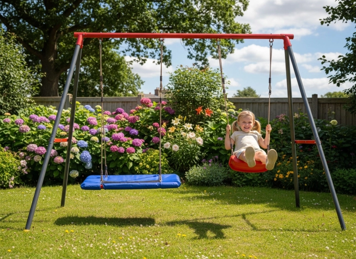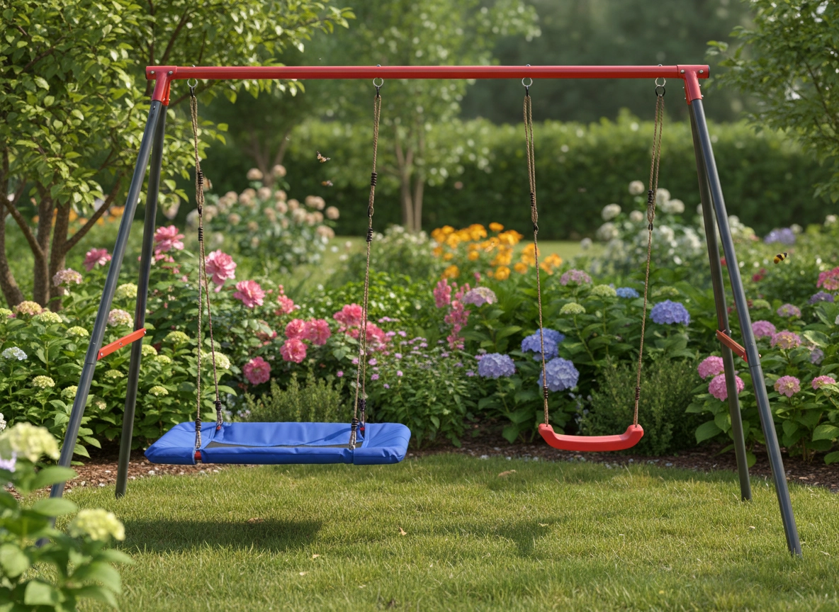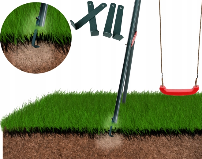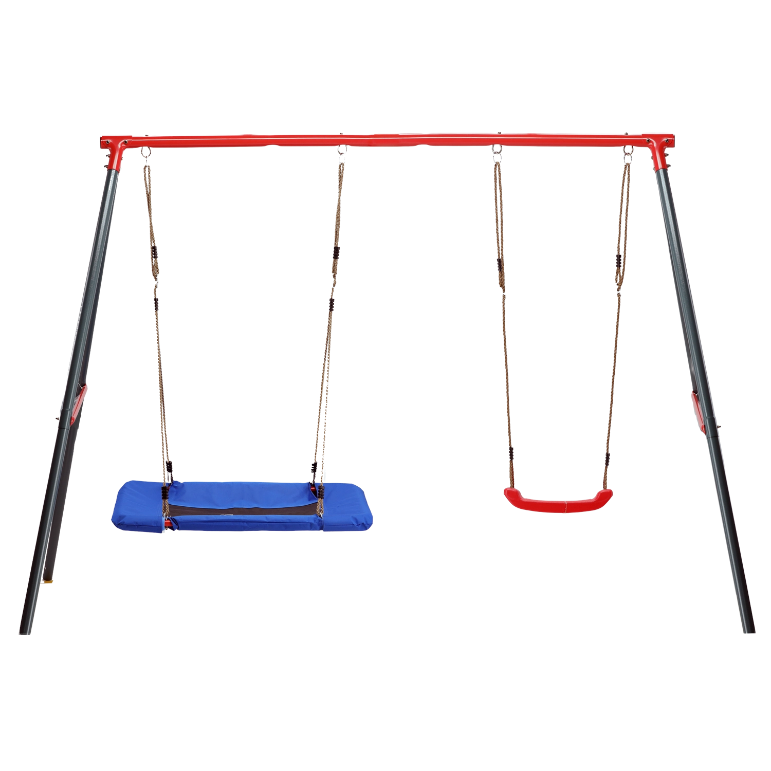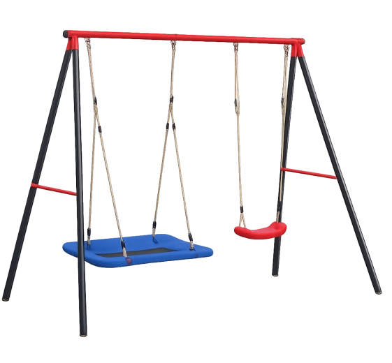 Praktická a zábavná sada pro venkovní hraní spojuje klasickou houpačku s moderním hnízdovým sedákem. Robustní A-konstrukce s červeným horním nosníkem a ocelovými nohami zajišťuje výbornou stabilitu, zatímco odolné provazové či řetězové zavěšení garantuje plynulé a bezpečné houpání. Díky atraktivním barvám, které neblednou, se stane ozdobou každé zahrady.