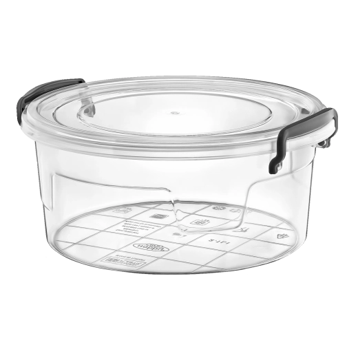 Praktický kulatý plastový box Multi Box o objemu 2,1 l je ideální pro každodenní skladování potravin. Díky transparentnímu provedení snadno zkontrolujete obsah bez otevírání. Těsnící víko se dvěma klipy zajišťuje hermetické uzavření, udržuje čerstvost a brání úniku pachů. Box je vhodný do mikrovlnné trouby, mrazničky i myčky nádobí, takže je maximálně praktický do každé kuchyně.