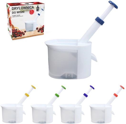 Užijte si léto bez starostí s peckami. Tento odpeckovač třešní a višní je navržen tak, aby byl rychlý, pohodlný a bezpečný při použití. Stačí vložit plody do zásobníku a stlačit píst – pecky se oddělí a ovoce zůstane připravené na pečení, dekoraci či zavařování.