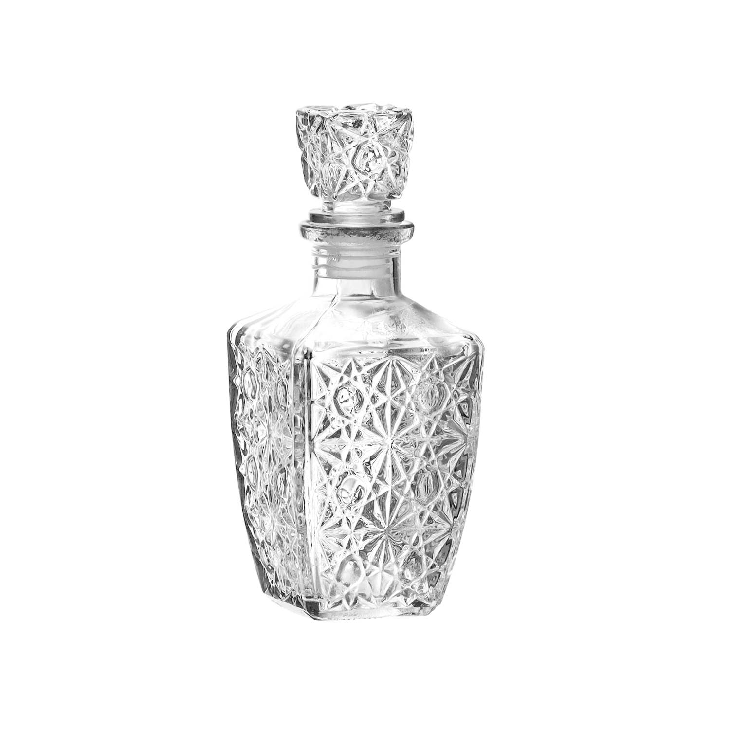 Tato rafinovaná karafa kombinuje dekorativní design s praktičností pro každodenní použití. Zdobený povrch v imitaci křišťálu dodává nápojům reprezentativní vzhled, zatímco robustní tlusté sklo zajišťuje dlouhou životnost a stabilitu při servírování.
