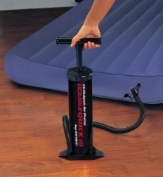 Ruční pumpa Intex Double Quick III je odolná a stabilní dvoučinná pumpa, která rychle nafoukne matrace, čluny i další nafukovací výrobky. Díky dvoucestnému chodu – při stlačení i zdvihu – poskytuje vyšší průtok vzduchu a zrychluje nafukování bez námahy. Stabilní opěrná základna a univerzální 3 nástavce usnadní použití doma i na cestách.