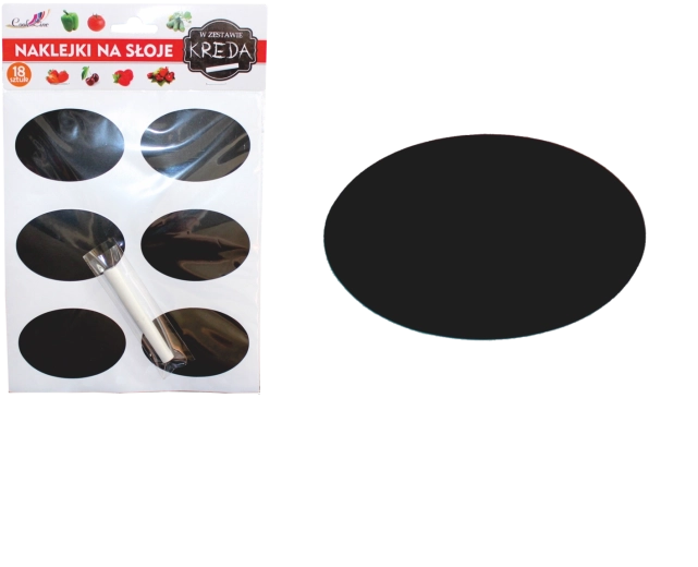 Praktická sada 18 samolepicích tabulových etiket o rozměrech 6 × 4,8 cm pro přehledné označení sklenic, dóz a dalších nádob. Etikety můžete opakovaně popisovat a mazat pomocí přiložené bílé křídy. Skvěle drží na skle, keramice, papíru i kovu a díky odolnosti vůči vlhkosti jsou ideální do kuchyně i spíže.