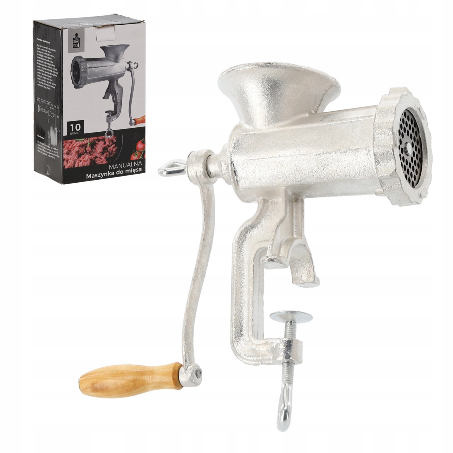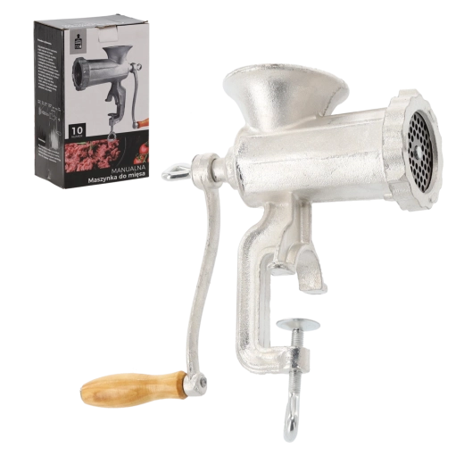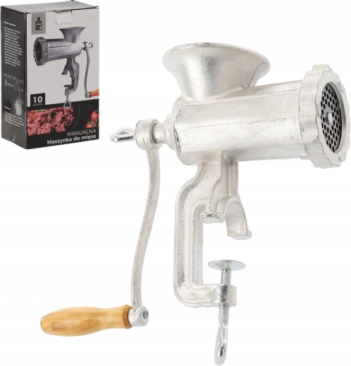 Klasický ruční mlýnek na maso č. 10 je spolehlivý pomocník pro domácí kuchaře i nadšence do domácí výroby. Díky odolnému litinovému tělu, ocelovým břitům a pevné svorce na stůl nabízí stabilní a efektivní mletí hovězího, vepřového, drůbežího i ryb. Ergonomická dřevěná klička zajišťuje pohodlnou práci a snadná demontáž usnadňuje čištění.