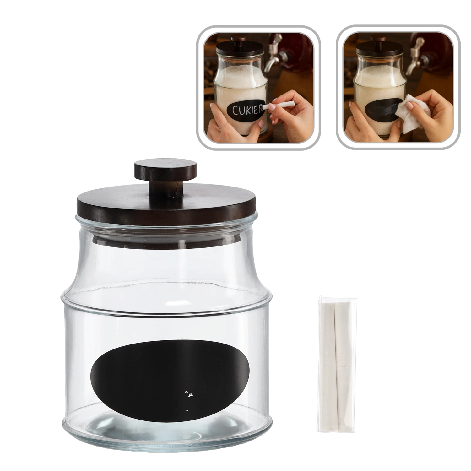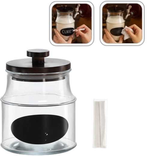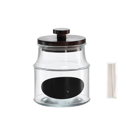 Velkoobjemová sklenice 1,9 l je ideálním řešením pro každodenní skladování potravin i domácích výtvorů. Díky dřevěnému víčku zůstává obsah déle čerstvý a chráněný před vlhkostí a pachy. Přiložená etiketa s možností popisu a křída vám umožní mít ve věcech pořádek a vždy rychle poznat, co je uvnitř.
