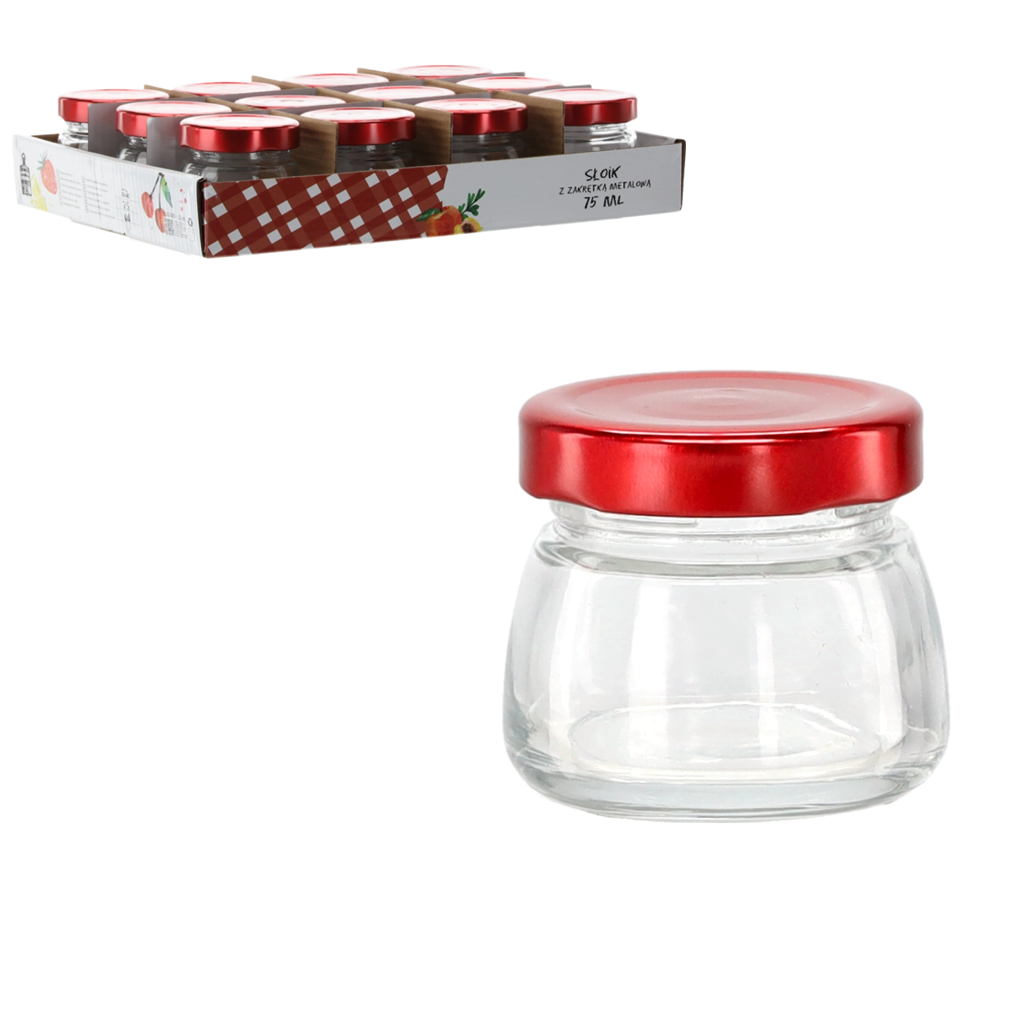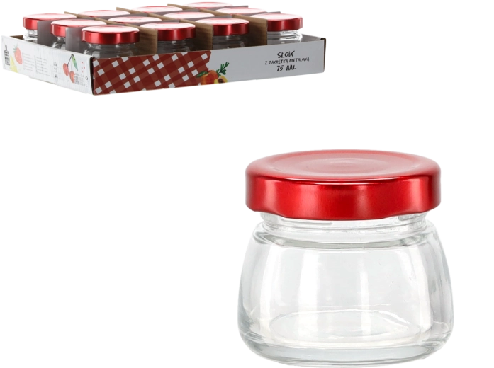Tato elegantní dóza o objemu 75 ml je vyrobena z kvalitního čirého skla, které zvýrazní barvu a strukturu uložených potravin. Červené kovové víčko zajišťuje spolehlivé uzavření a pomáhá uchovat čerstvost, aroma a chuť vašich domácích dobrot.