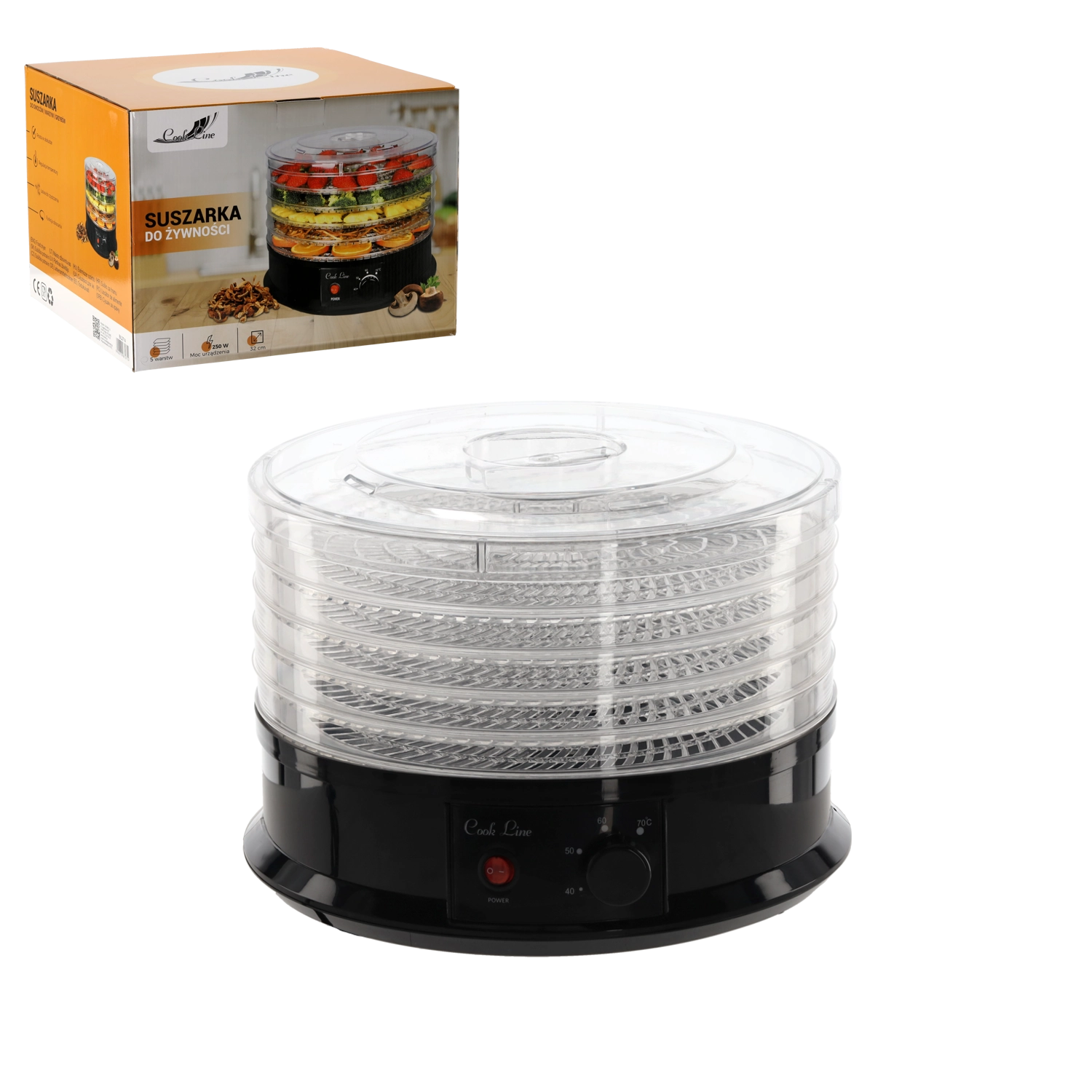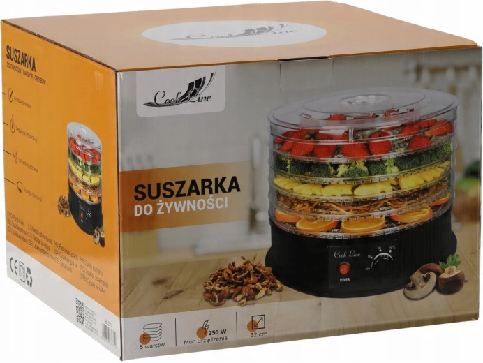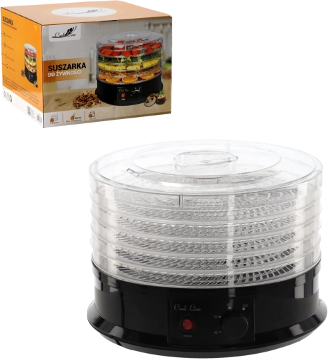 Sušička potravin s průměrem 32 cm a výkonem 250 W je ideální pro každodenní domácí sušení. Díky pěti prostorným miskám (každá až 1 kg) snadno připravíte křupavé jablečné či banánové chipsy, ovocné plátky, bylinky a čaje nebo sušené maso. Nastavitelná teplota 35–70 °C umožňuje přesně přizpůsobit sušení konkrétním surovinám.