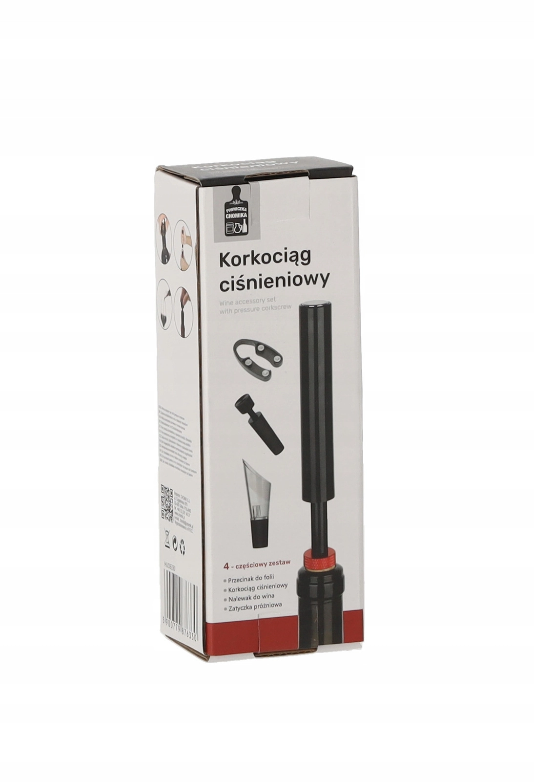 - Řezač fólie, uzávěr lahve, nalévací nástavec (aerátor), tlakový vývrtka