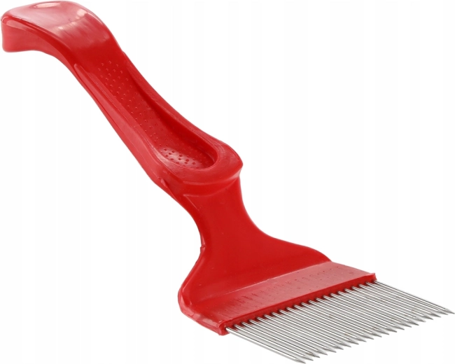 Tato odvíčkovací vidlička je nepostradatelná pomůcka pro každého včelaře. Nerezová ocel zajišťuje dlouhou životnost, čistý řez a snadnou údržbu, zatímco lehké plastové držadlo poskytuje jistý úchop i při delší práci. Šířka hlavice 7 cm a délka 20,4 cm umožňují přesné a rychlé odvíčkování bez poškození plástu.