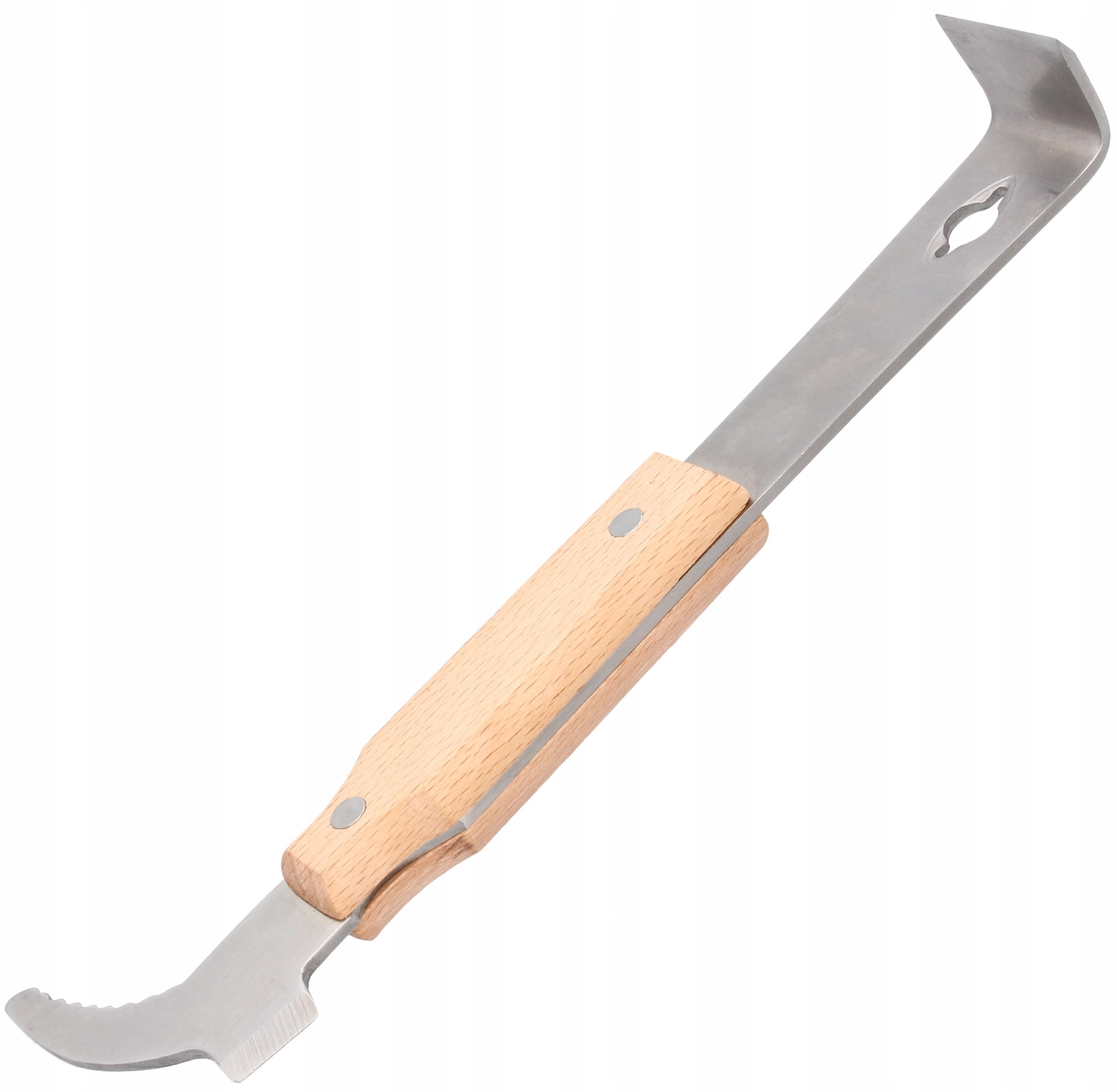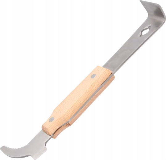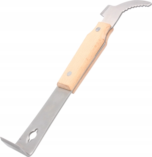 Ergonomická dřevěná rukojeť zajišťuje jistotu a komfort i v rukavicích, ideální pro práci u úlu v terénu.