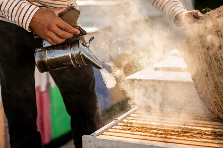 Kožený měch zajišťuje plynulé dávkování vzduchu a stabilní proud dýmu pro klidnější a bezpečnější práci se včelami.
