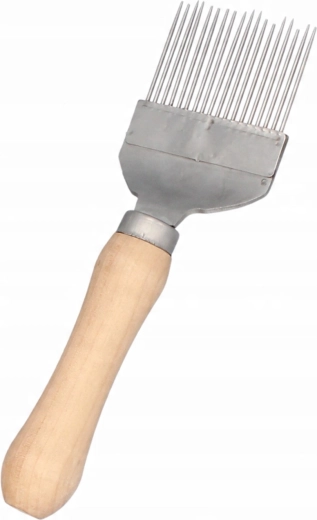 Tato odvíčkovací vidlička je spolehlivý pomocník do každé včelnice. Díky hlavici z nerezové oceli s jemnými a ostrými hroty snadno odstraníte vosková víčka i z hůře přístupných míst, takže med může volně vytékat při vytáčení. Dřevěná rukojeť příjemně padne do ruky a zajišťuje jistý úchop i při delší práci.