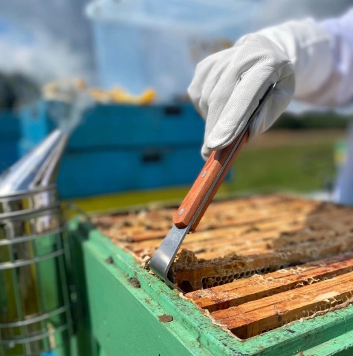 Nerezová ocel odolává korozi a snadno se čistí, takže nástroj zvládne každodenní práci ve včelnici.