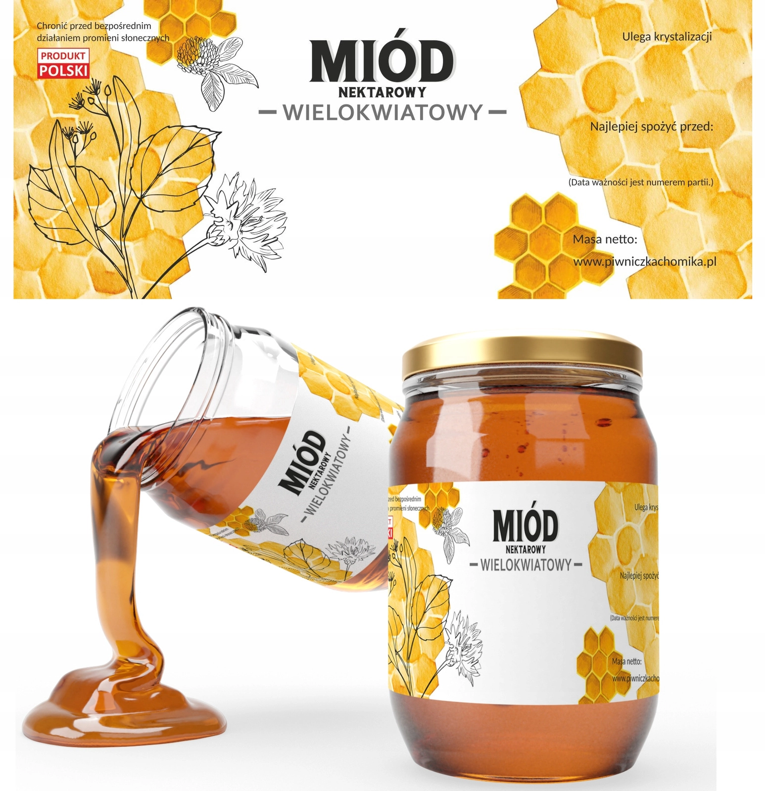 Tyto kvalitní etikety jsou určené pro sklenice s vícekvětovým nektarovým medem. Rozměr 154 × 60 mm poskytuje dostatek místa pro jasné označení produktu, šarže i data minimální trvanlivosti. Vhodné pro včelaře, malé výrobce i farmářské prodejny, které chtějí sjednocené a atraktivní balení.