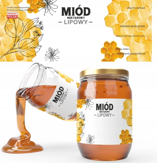 Profesionální komplet etiket určených pro označení medu nektarového – lipového. Díky přehlednému prostoru pro text snadno vyznačíte druh medu i datum spotřeby, což usnadní identifikaci pro zákazníky a zvýší důvěru ve váš produkt.