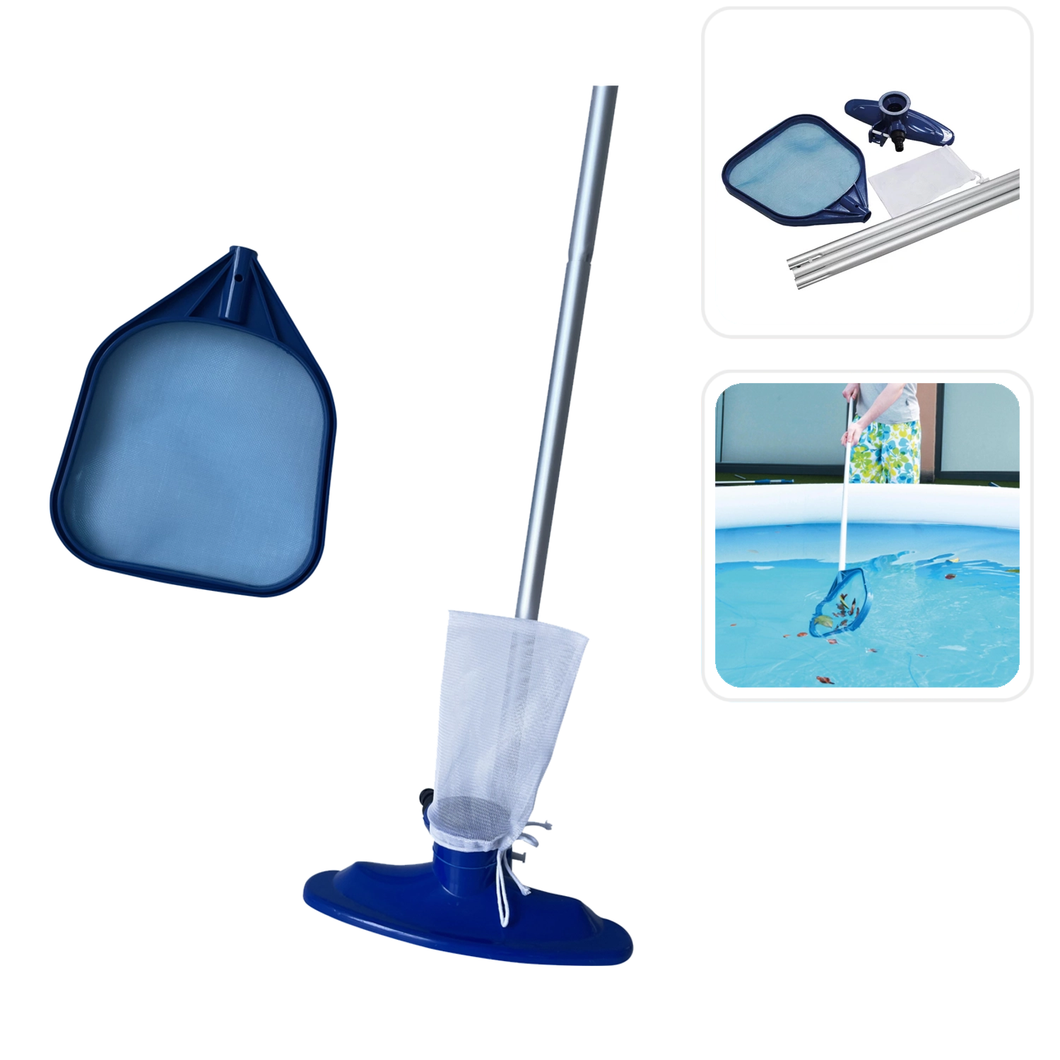 Tato kompletní sada na údržbu bazénu je navržená pro rychlé a pohodlné čištění menších nadzemních bazénů. Lehká tyč usnadňuje manipulaci, zatímco vysávací hlavice s připojením na hadici 3/4'' nasává nečistoty do opakovaně použitelného sáčku. Síťka na listí se postará o plovoucí nečistoty na hladině.