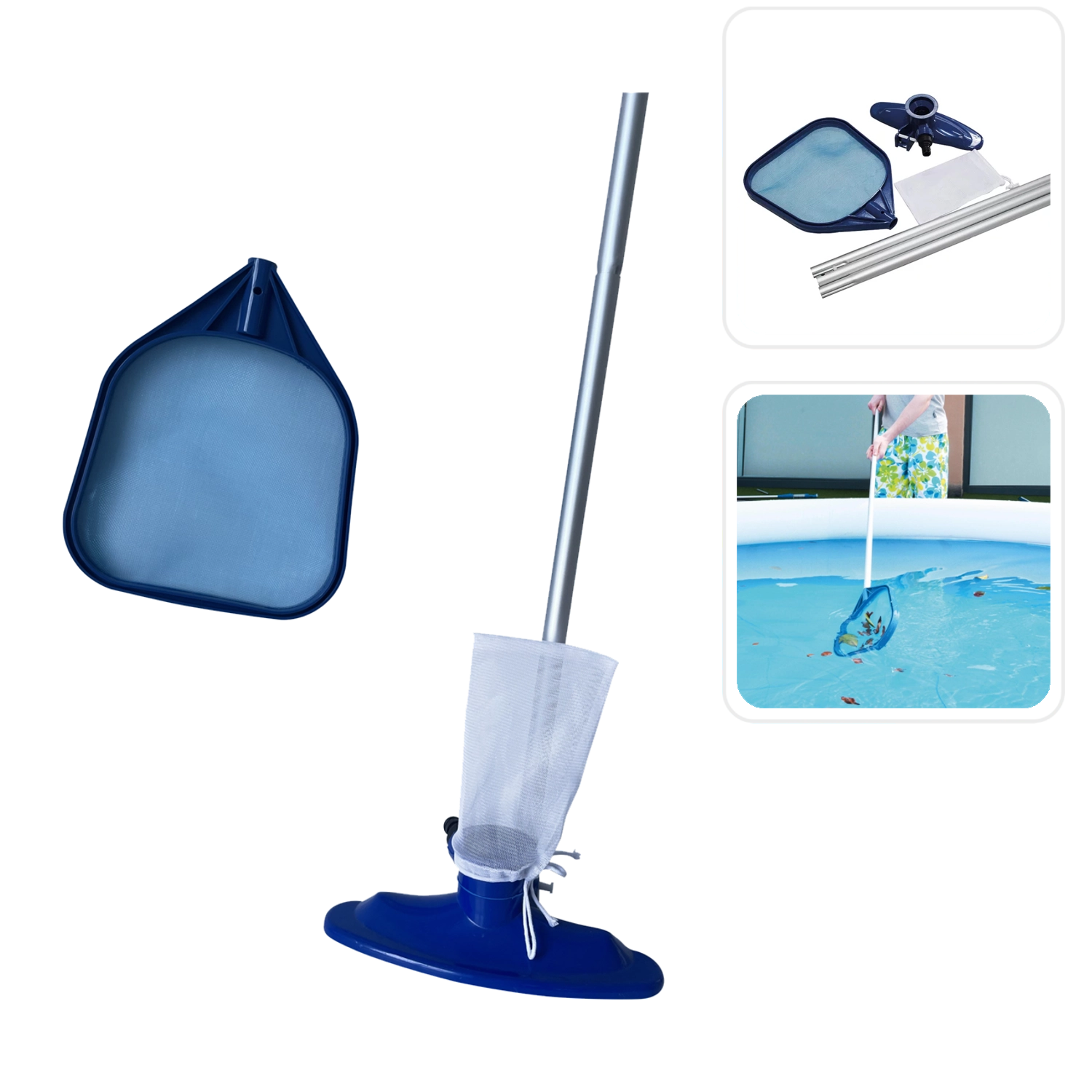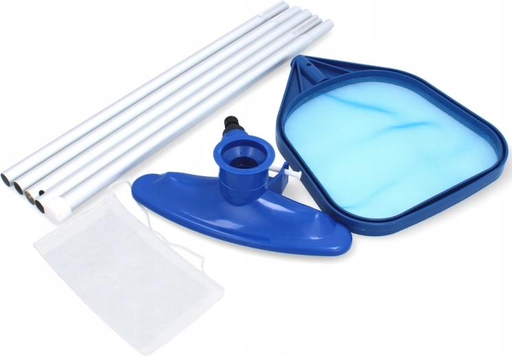 Kompletní sada pro údržbu bazénu s délkou až 205 cm vám usnadní každodenní čištění. Obsahuje lehkou hliníkovou tyč, jemnou síťku na listí a hlavu ručního vysavače s opakovaně použitelným sáčkem. Ideální pro nafukovací i rámové bazény od průměru 3 m, s kompatibilitou pro hadici 3/4" a příslušenství s vnitřním průměrem 19 mm.
