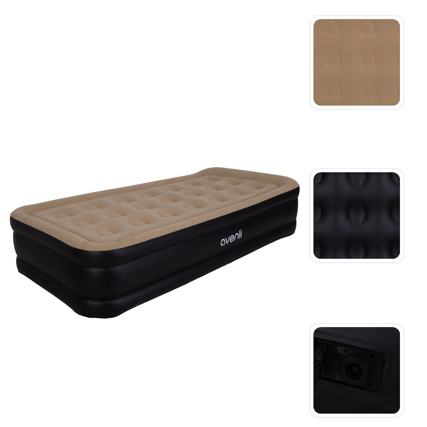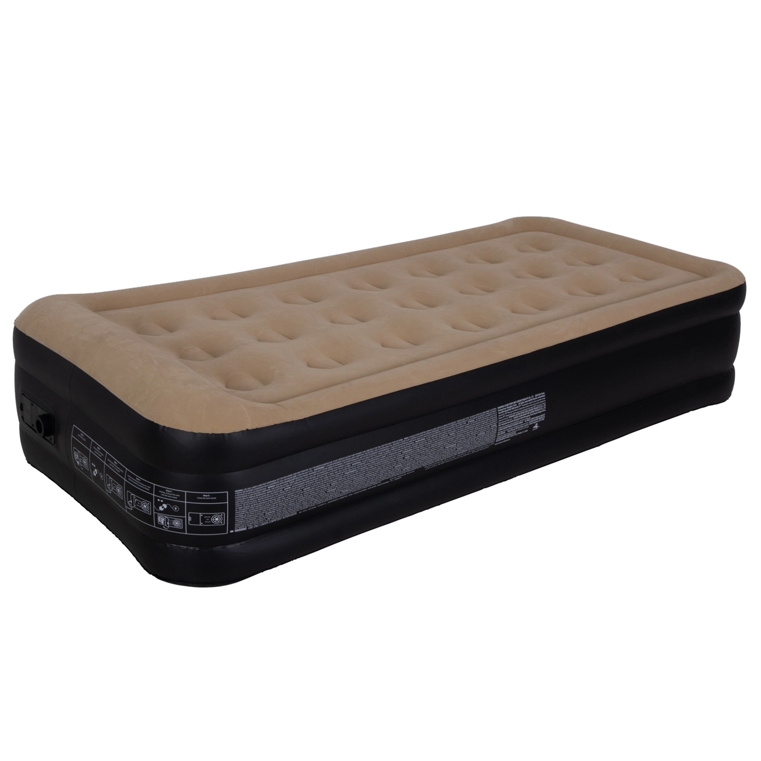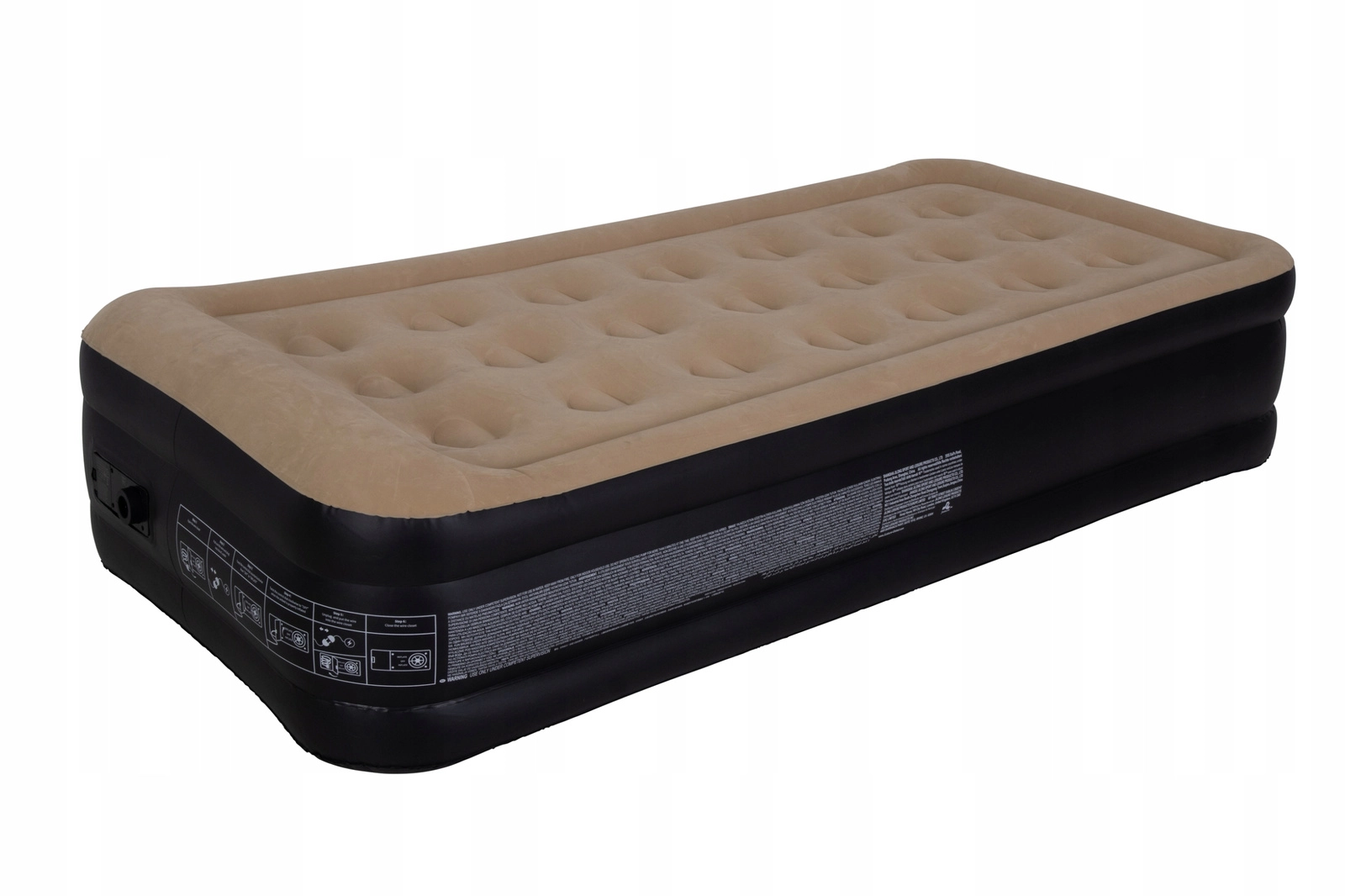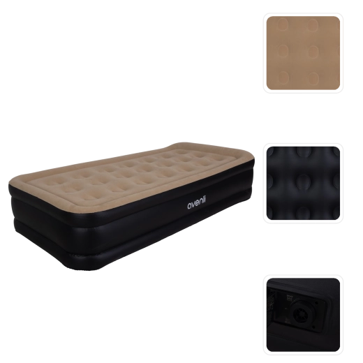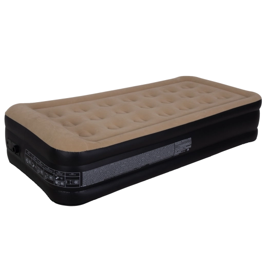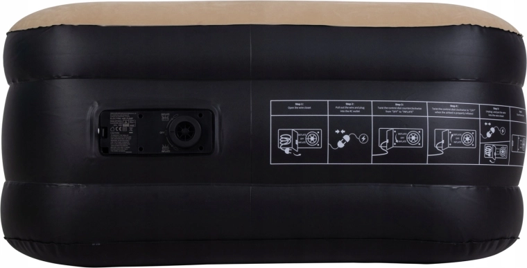 Vestavěná elektrická pumpa 220–240 V postel sama rychle nafoukne i vyfoukne – stačí přepnout ovladač. Po použití ji snadno složíte do transportní tašky. Doporučené zatížení je 100 kg, ideální pro jednu dospělou osobu.
