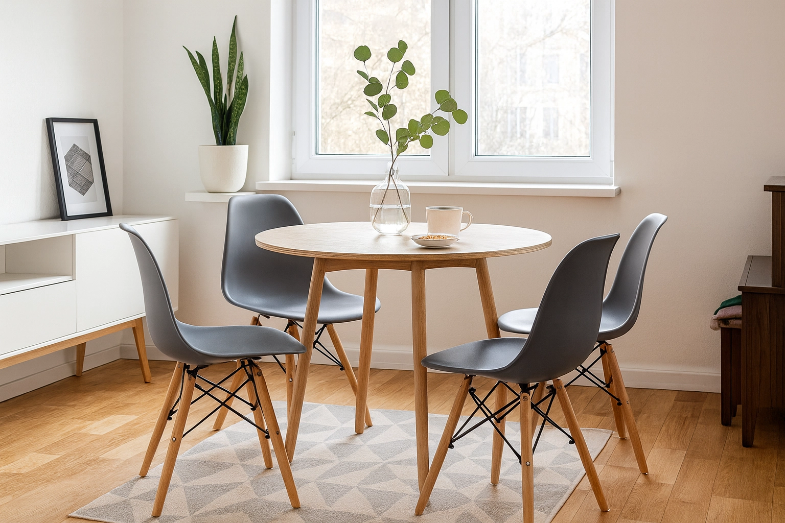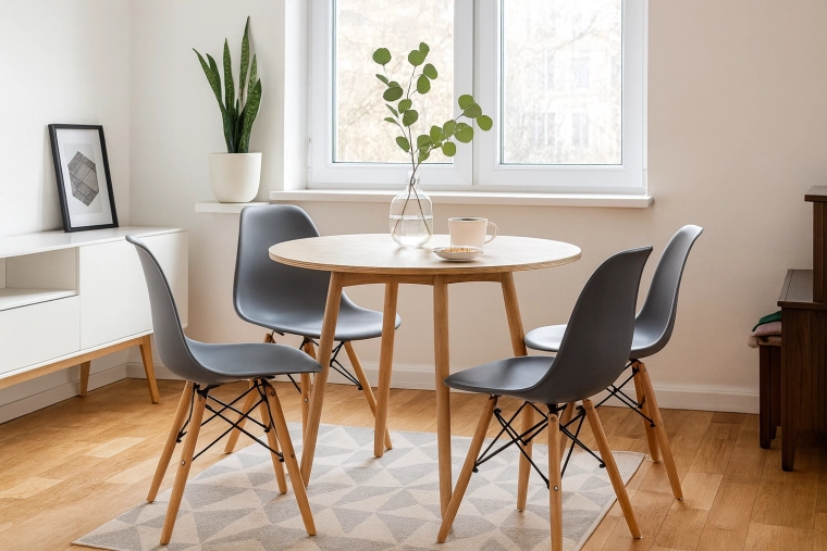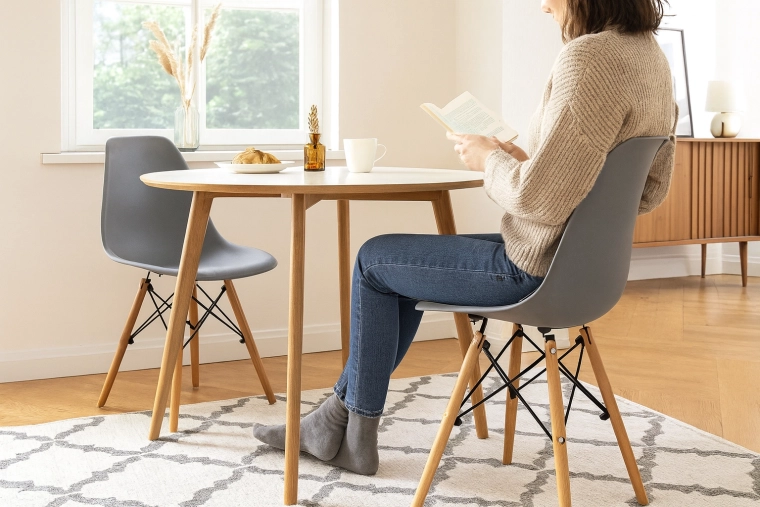 Rychlé sestavení a nadčasový vzhled pro jídelny, kuchyně, obývací pokoje i kavárny.