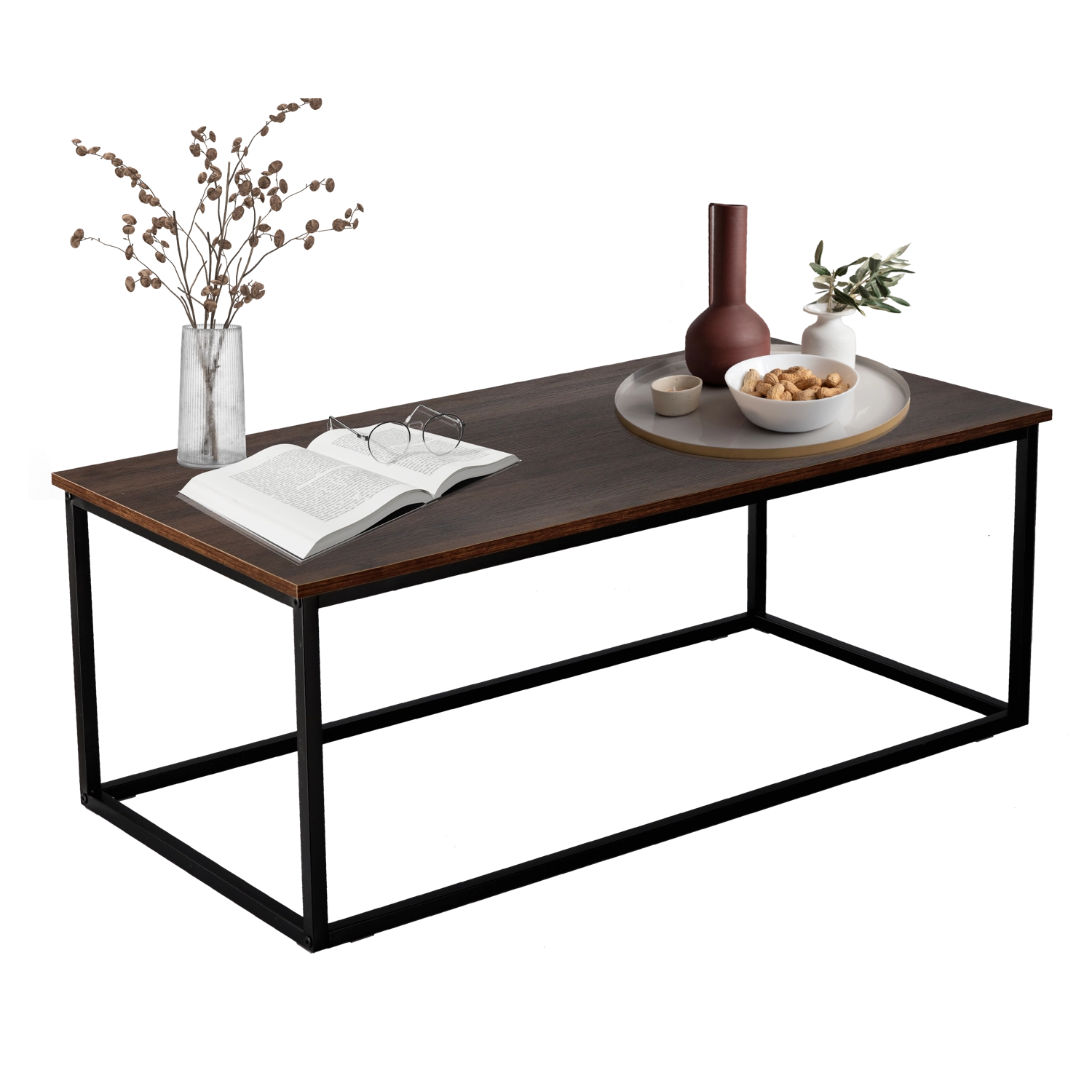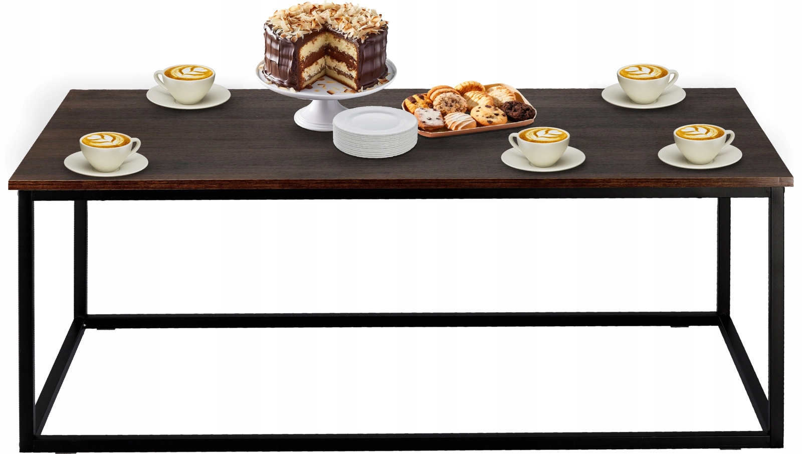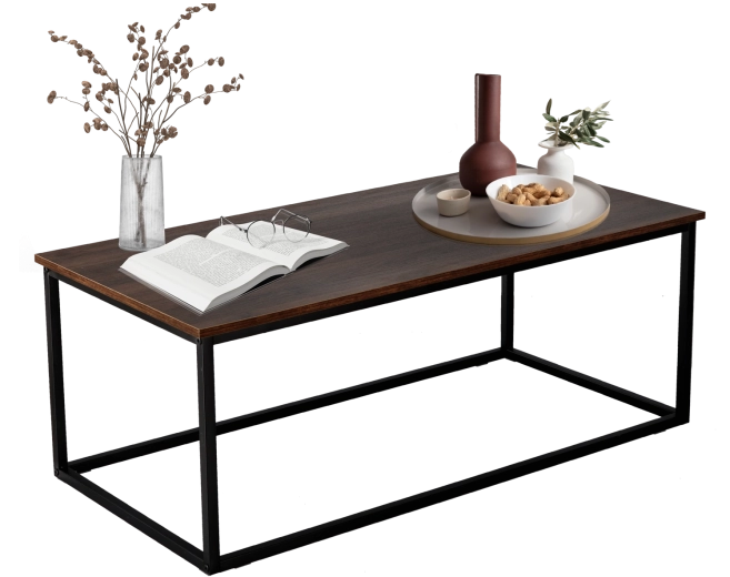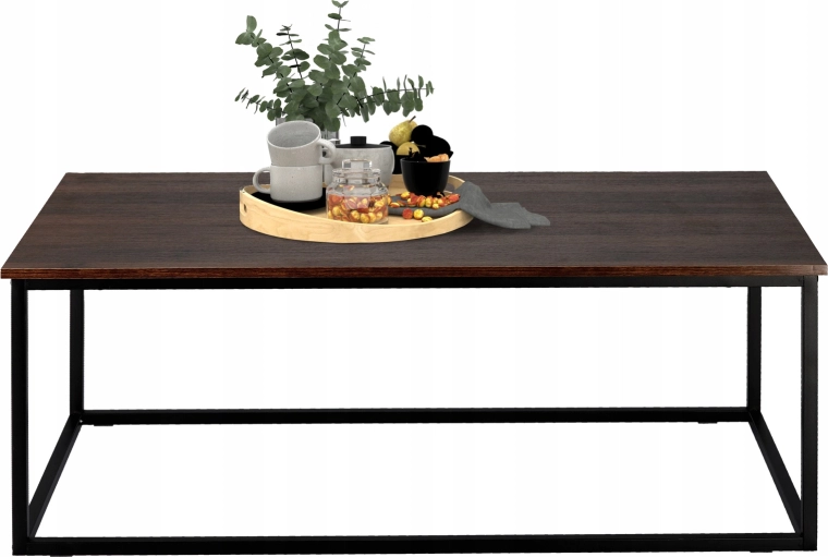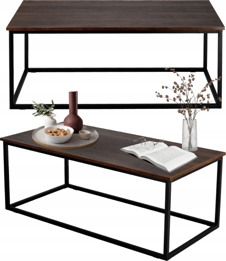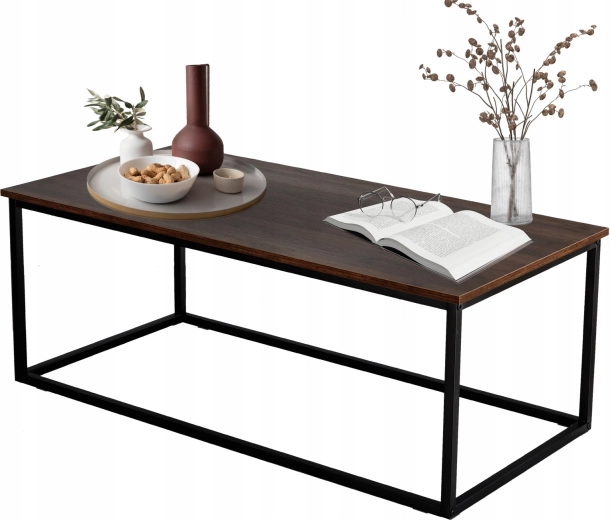 Vneste do interiéru čisté linie a industriální eleganci. Obdélníkový stolek s deskou v imitaci dřeva působí útulně, zatímco minimalistická kovová podnož dodává vzdušnost a odolnost. Skvěle poslouží pro kávu, knihy i dekorace a stane se stylovým středobodem vaší zóny odpočinku.