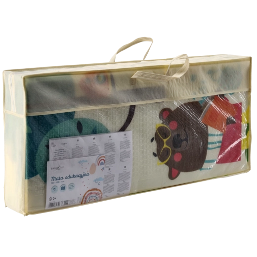 Tato oboustranná vzdělávací podložka poskytuje dětem měkký, teplý a hygienický povrch pro hraní, lezení i první krůčky. Díky odolné pěně XPE skvěle tlumí nárazy a je příjemná na dotek. Skládací design umožňuje rychlé složení a uložení do přiložené tašky – ideální na doma i na cesty.